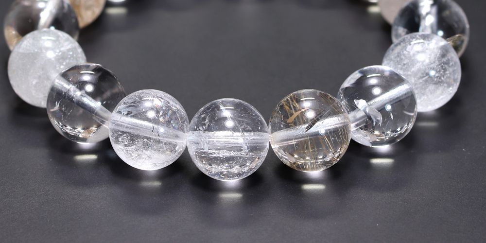 当時確保した原石は約1.5トンにも及びましたが、その中からブレスレットとして美しく仕上げられる粒はごく僅かです。特にルチルが内包されたタイプは全体の約1%程度となり、粒ごとのバランスや統一感を持たせて組み上げるものとなると、まさに選び抜かれた存在といえます。