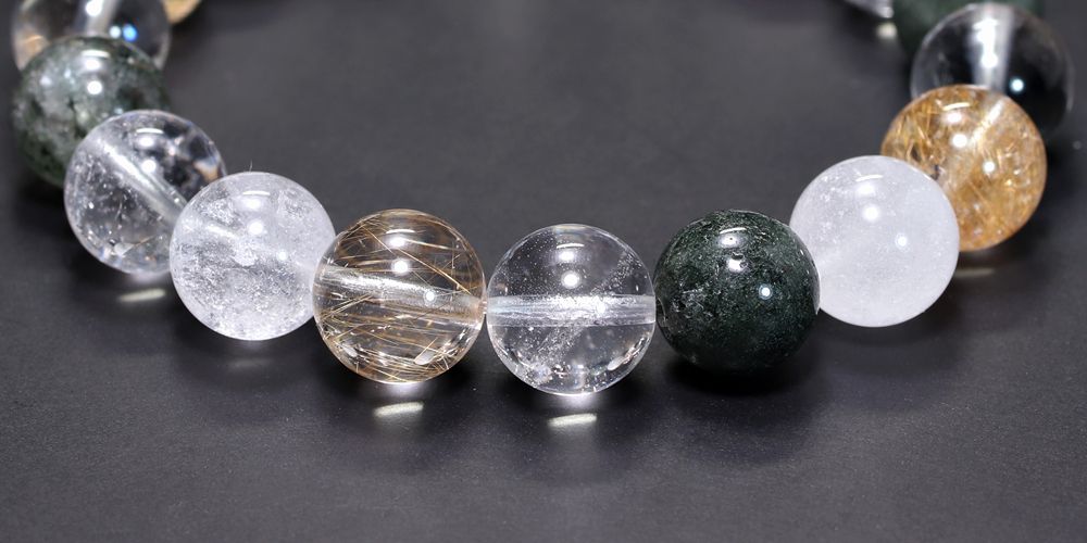 当時確保した原石は約1.5トンにも及びましたが、その中からブレスレットとして美しく仕上げられる粒はごく僅かです。特にルチルが内包されたタイプは全体の約1%程度となり、粒ごとのバランスや統一感を持たせて組み上げるものとなると、まさに選び抜かれた存在といえます。