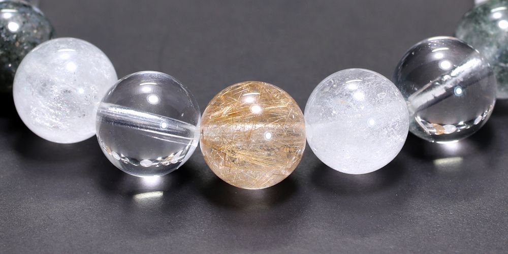 当時確保した原石は約1.5トンにも及びましたが、その中からブレスレットとして美しく仕上げられる粒はごく僅かです。特にルチルが内包されたタイプは全体の約1%程度となり、粒ごとのバランスや統一感を持たせて組み上げるものとなると、まさに選び抜かれた存在といえます。