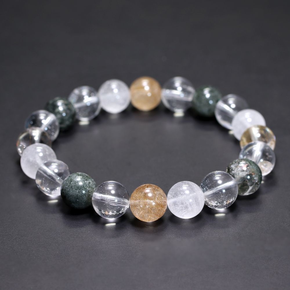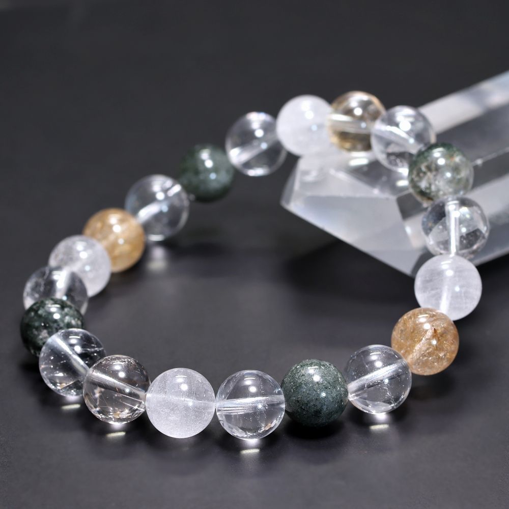 [高品質+]インド/マニハール産ヒマラヤ水晶ブレスレット(約10.5mm玉・特選ミックスタイプ)