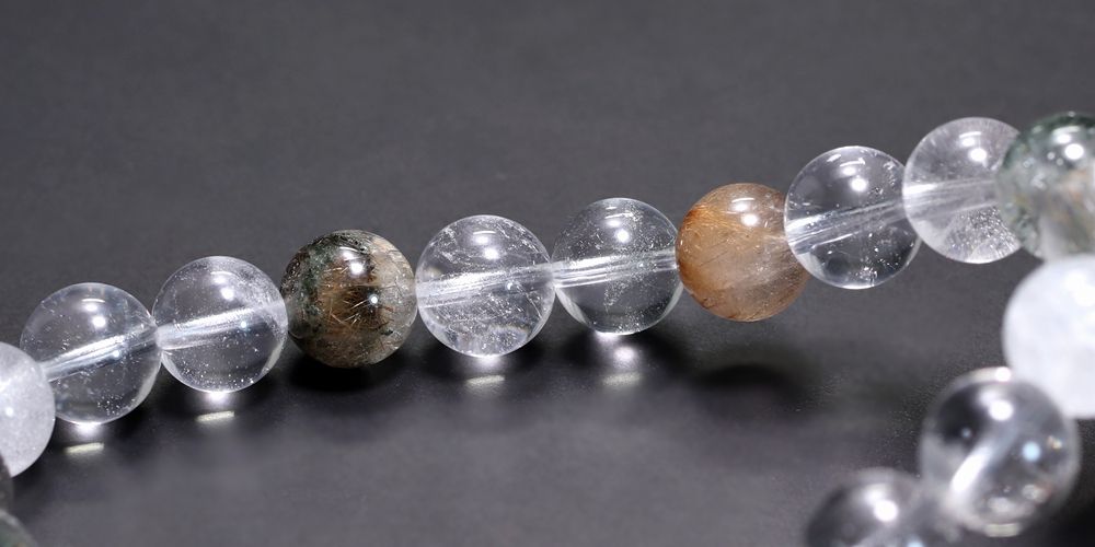 当時確保した原石は約1.5トンにも及びましたが、その中からブレスレットとして美しく仕上げられる粒はごく僅かです。特にルチルが内包されたタイプは全体の約1%程度となり、粒ごとのバランスや統一感を持たせて組み上げるものとなると、まさに選び抜かれた存在といえます。