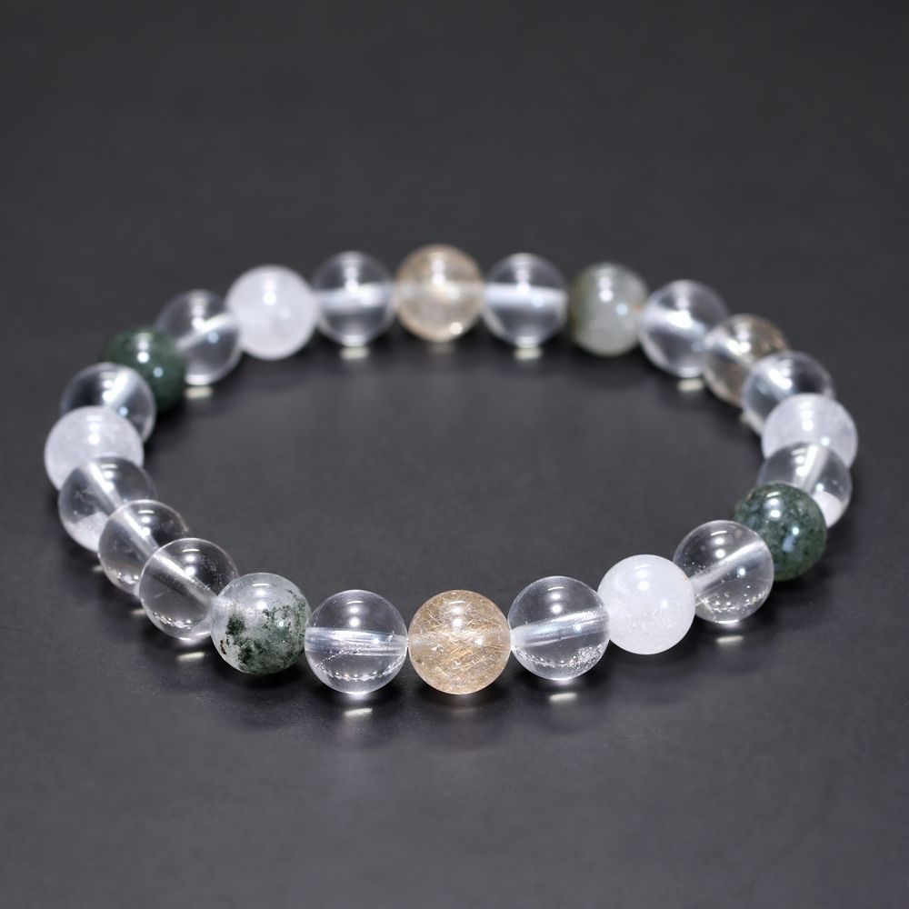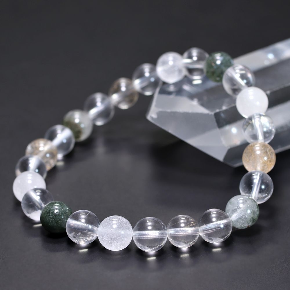 [3A++]インド/マニハール産ヒマラヤ水晶ブレスレット(約8.5mm玉・特選ミックスタイプ)