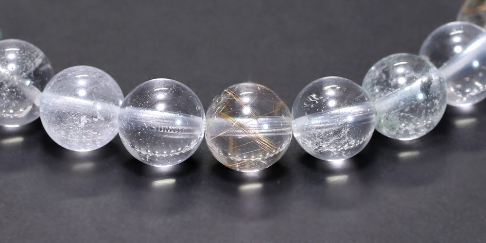 当時確保した原石は約1.5トンにも及びましたが、その中からブレスレットとして美しく仕上げられる粒はごく僅かです。特にルチルが内包されたタイプは全体の約1%程度となり、粒ごとのバランスや統一感を持たせて組み上げるものとなると、まさに選び抜かれた存在といえます。