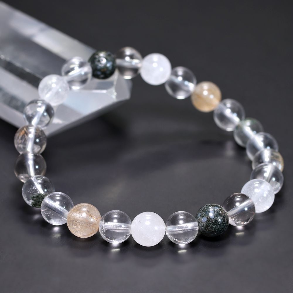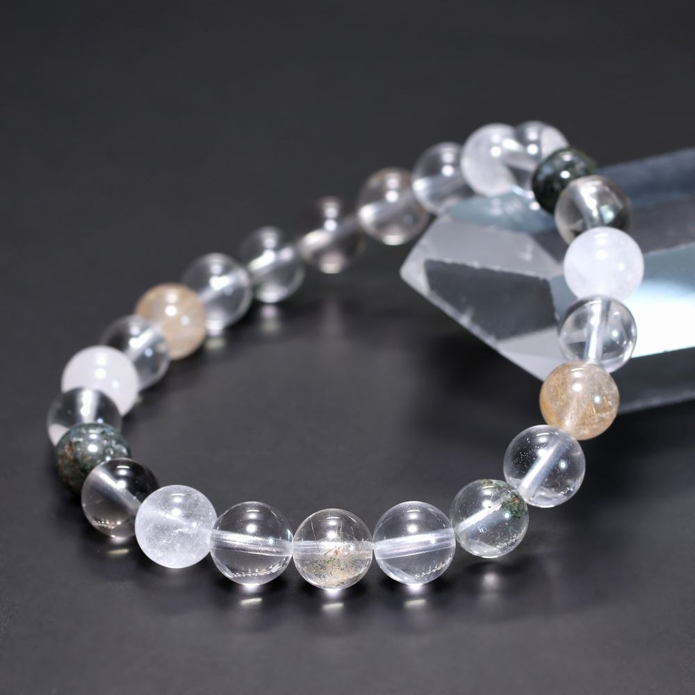 [3A++]インド/マニハール産ヒマラヤ水晶ブレスレット(約8mm玉・特選ミックスタイプ)