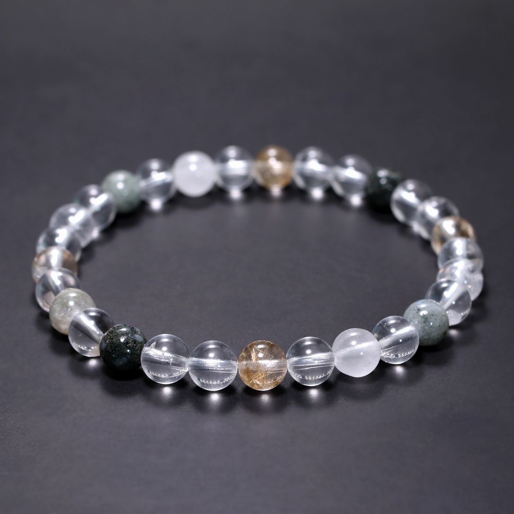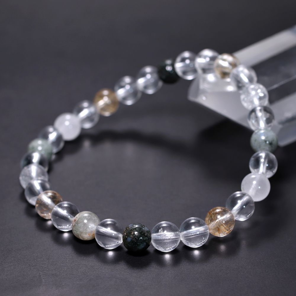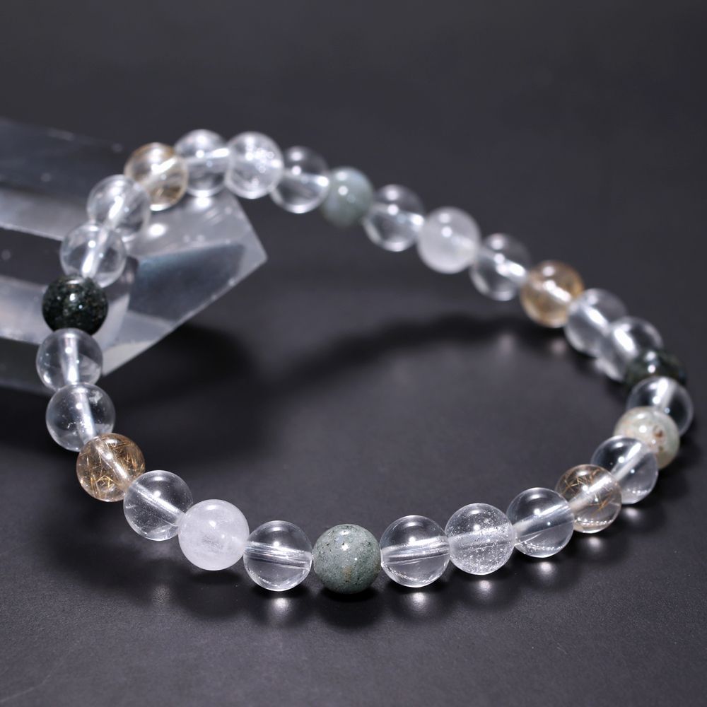 [高品質+]インド/マニハール産ヒマラヤ水晶ブレスレット(約6.5mm玉・特選ミックスタイプ)