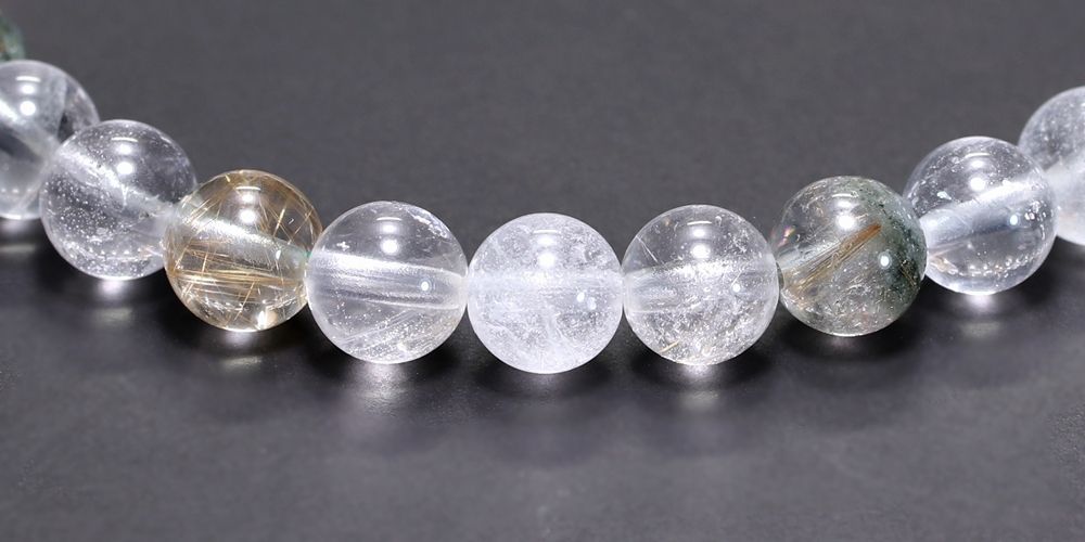 当時確保した原石は約1.5トンにも及びましたが、その中からブレスレットとして美しく仕上げられる粒はごく僅かです。特にルチルが内包されたタイプは全体の約1%程度となり、粒ごとのバランスや統一感を持たせて組み上げるものとなると、まさに選び抜かれた存在といえます。