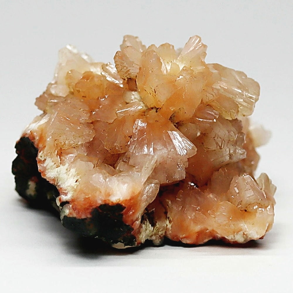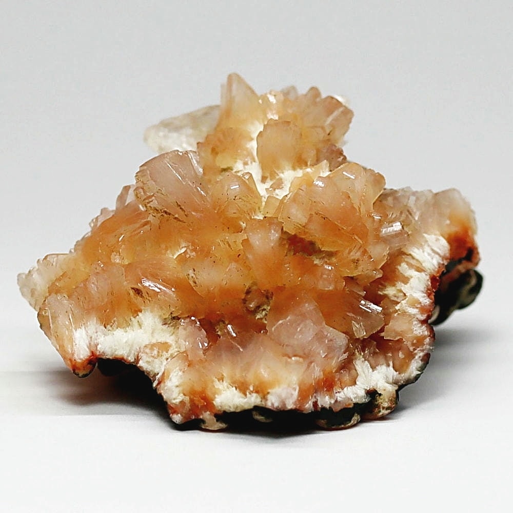 ヒューランダイトはゼオライト(沸石)の一種で、ガラスのような透明感と、真珠光沢にも似た独特の艶を併せ持つ美しい鉱物として知られています。