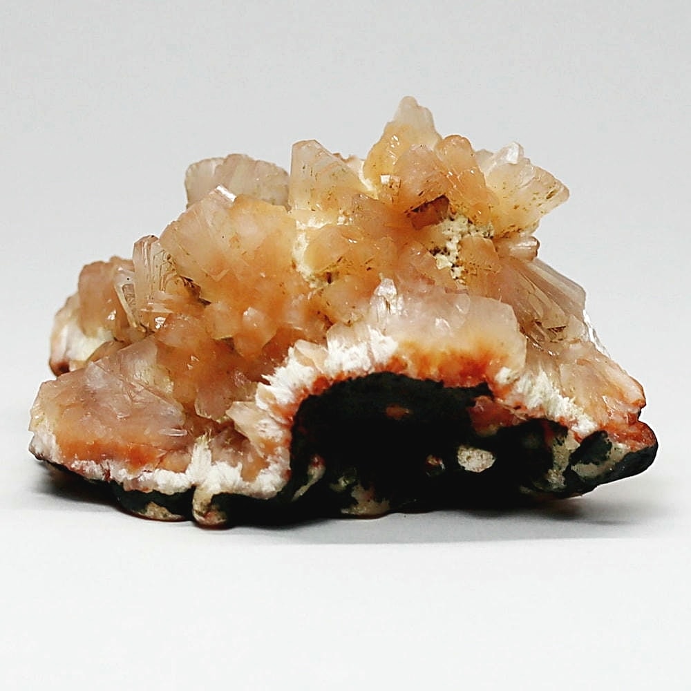 尚、ヒューランダイトと共に同じゼオライトグループに属するスティルバイトも共生している場合がございますが、全体としてはヒューランダイトの結晶が主体となっており、本品の特徴を代表する鉱物としてヒューランダイトをメインにご紹介しております。