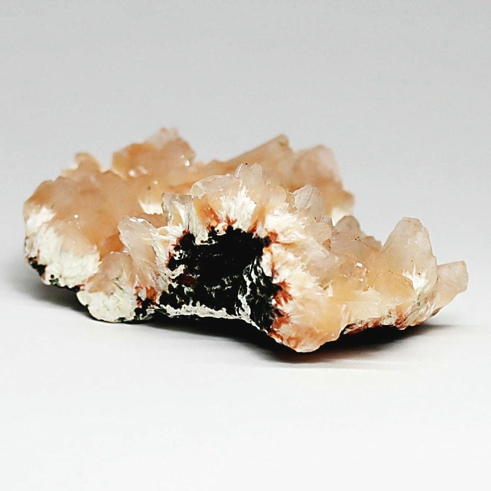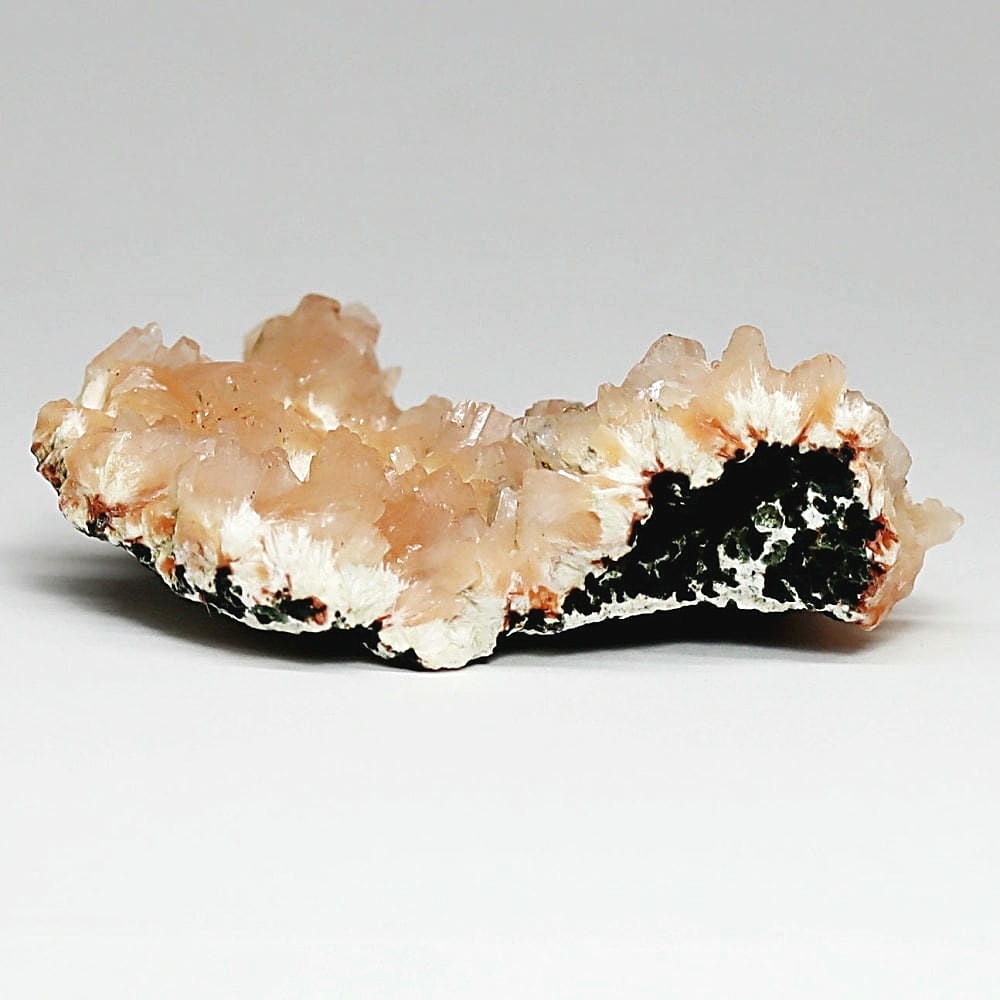 尚、ヒューランダイトと共に同じゼオライトグループに属するスティルバイトも共生している場合がございますが、全体としてはヒューランダイトの結晶が主体となっており、本品の特徴を代表する鉱物としてヒューランダイトをメインにご紹介しております。