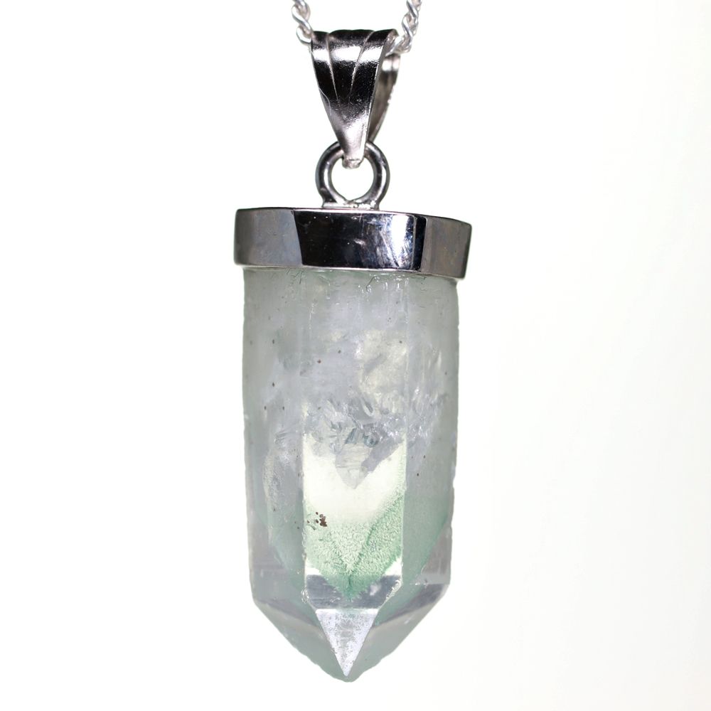 [特別価格/高品質]マダガスカル産グリーンファントムクォーツ原石ペンダントトップ(シルバー925)¥8,800クイックガイド送料