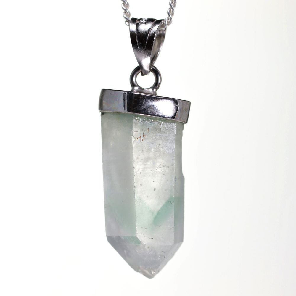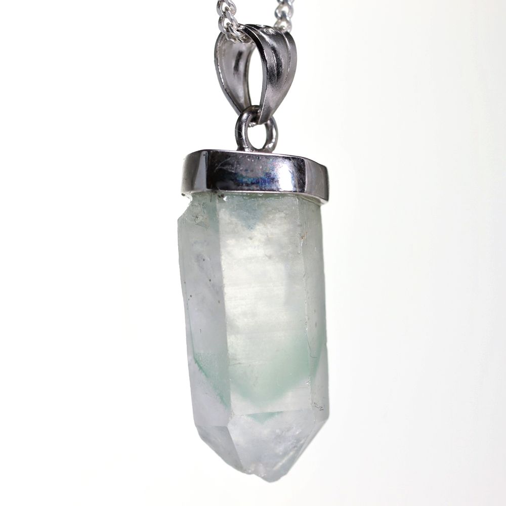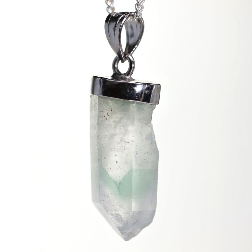 [特別価格/高品質]マダガスカル産グリーンファントムクォーツ原石ペンダントトップ(シルバー925)¥6,800クイックガイド送料