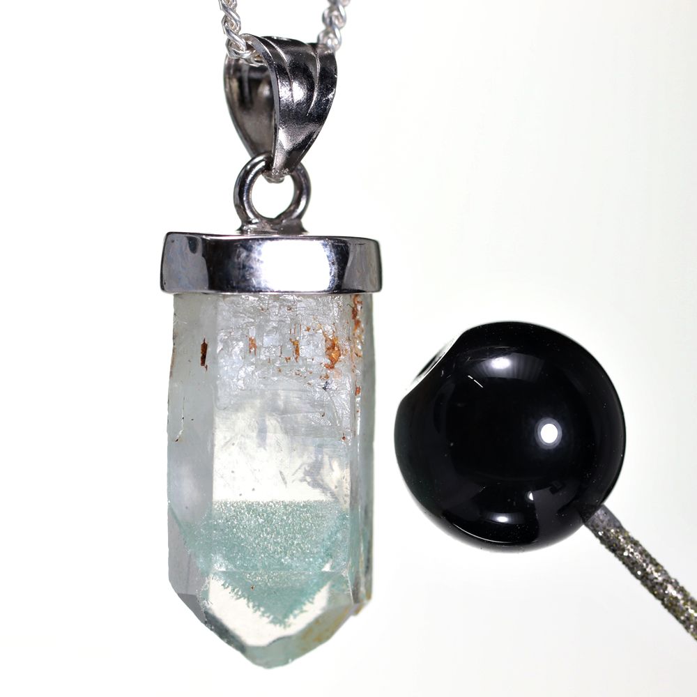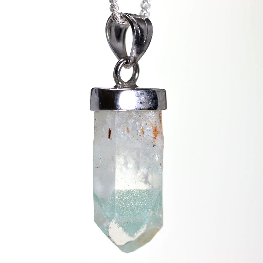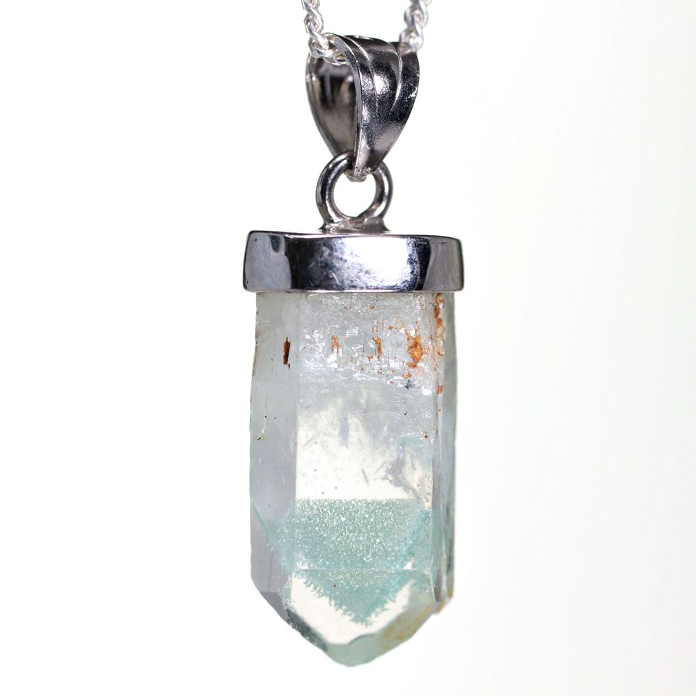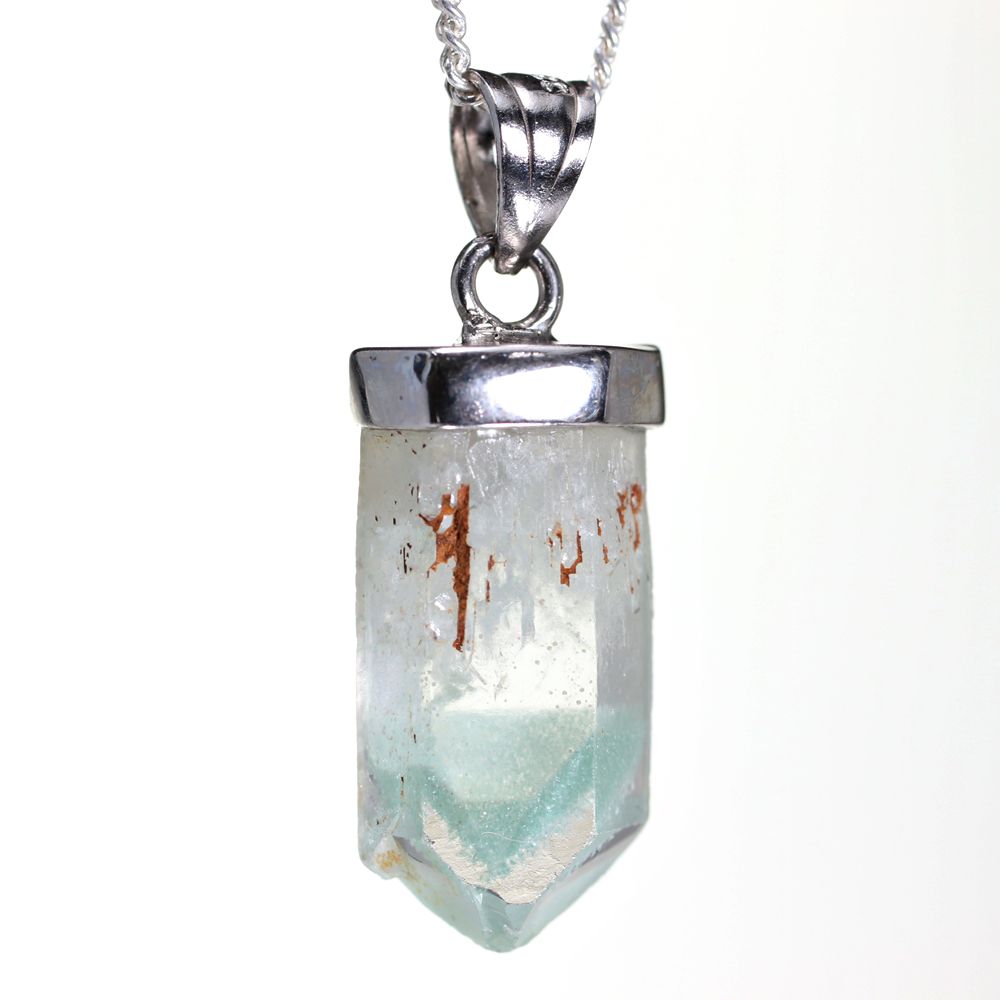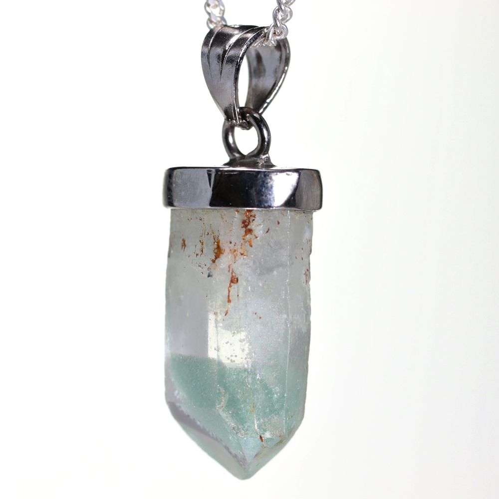 [特別価格/高品質]マダガスカル産グリーンファントムクォーツ原石ペンダントトップ(シルバー925)¥6,800クイックガイド送料