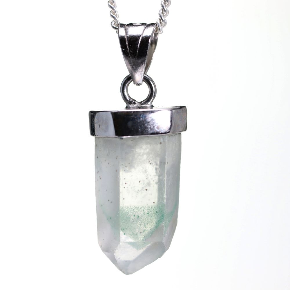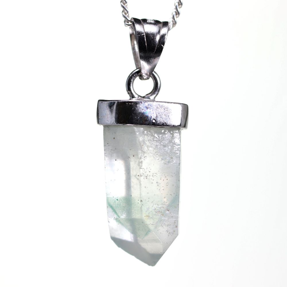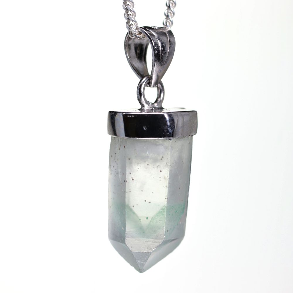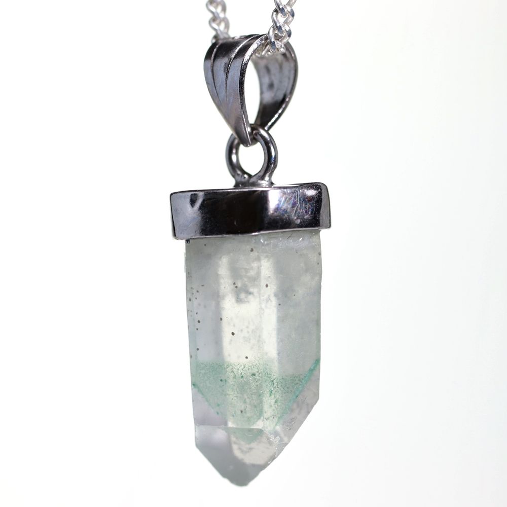 [特別価格/高品質]マダガスカル産グリーンファントムクォーツ原石ペンダントトップ(シルバー925)¥6,800クイックガイド送料