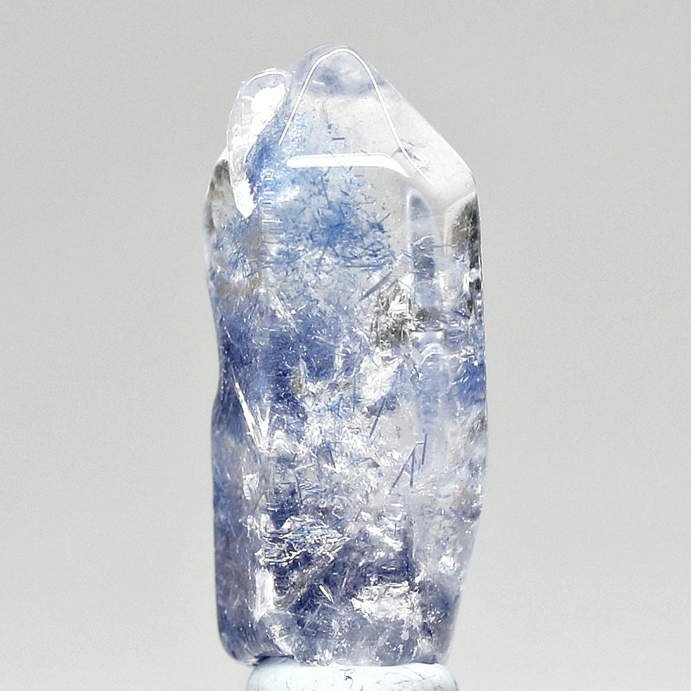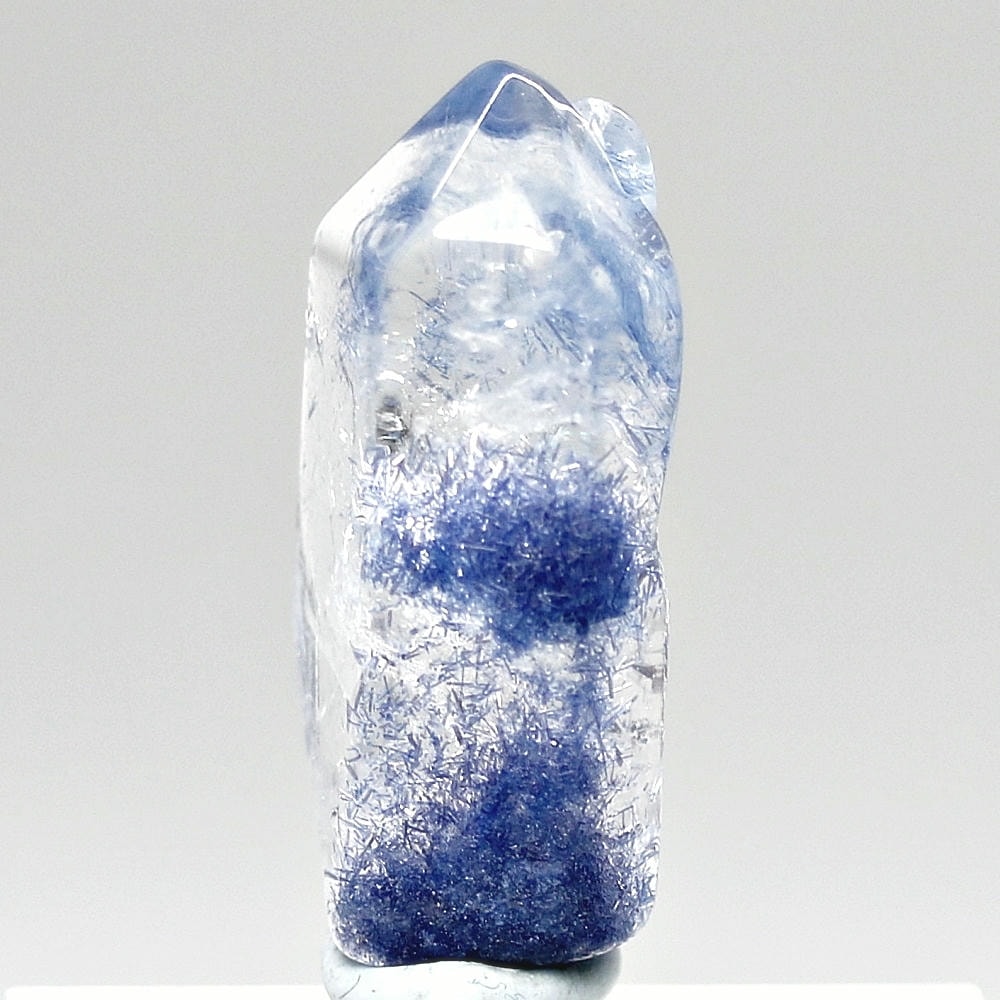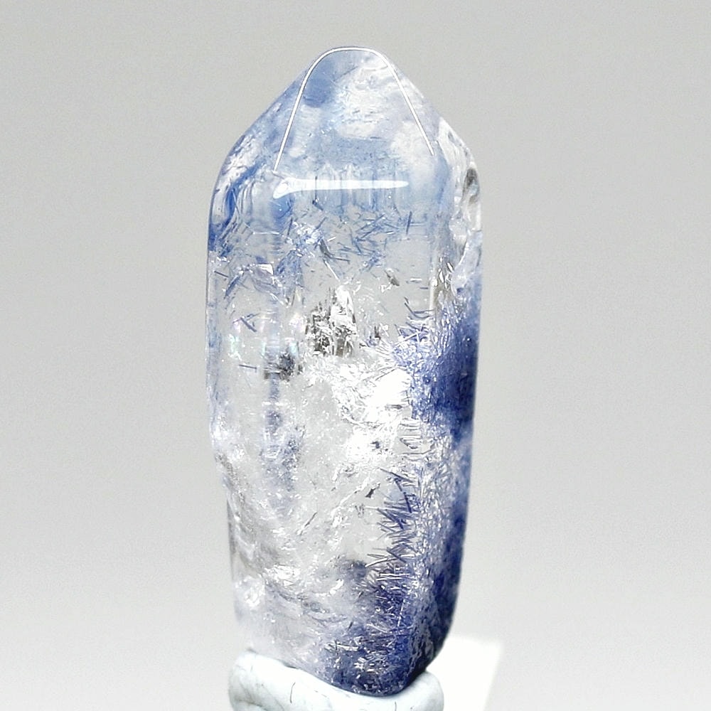 適切な研磨により水晶本来の透明感が引き出され、内部に内包されたデュモルチェライトの繊細な結晶美を、より鮮明にご覧いただける仕上がりとなっております。