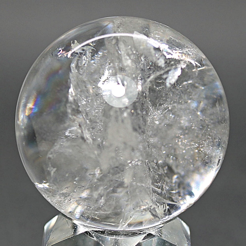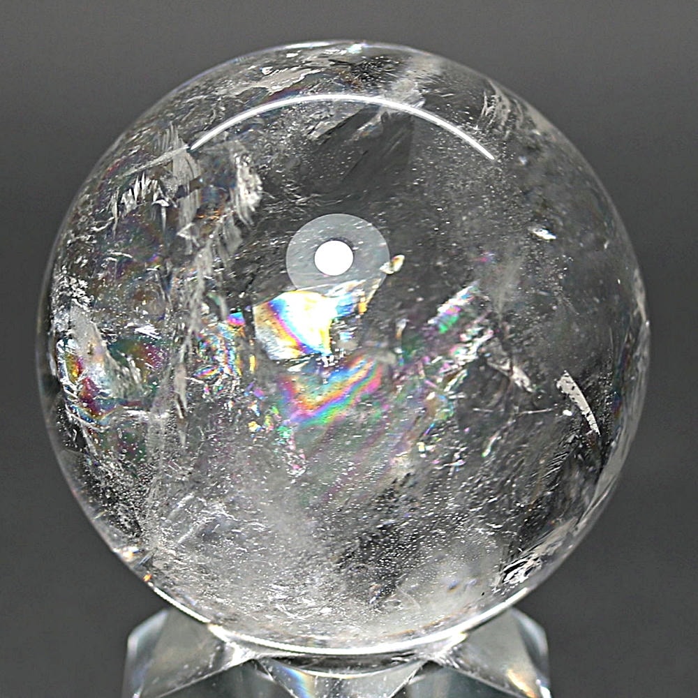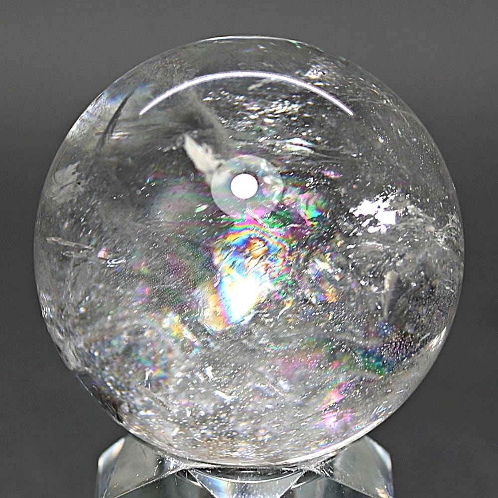 ご覧のお品は、価格を抑えつつも天然の虹をお楽しみいただける「ブラジル産レインボー水晶玉」でございます。