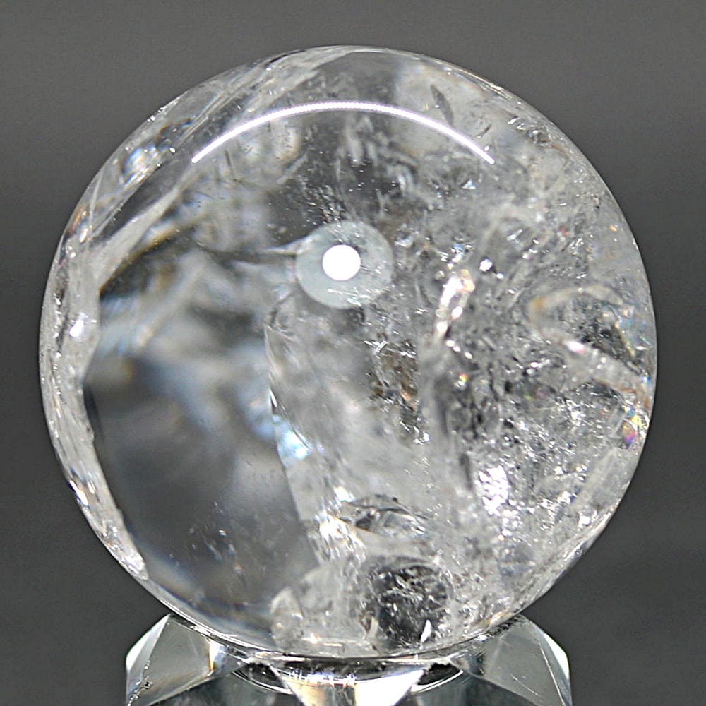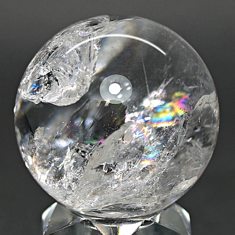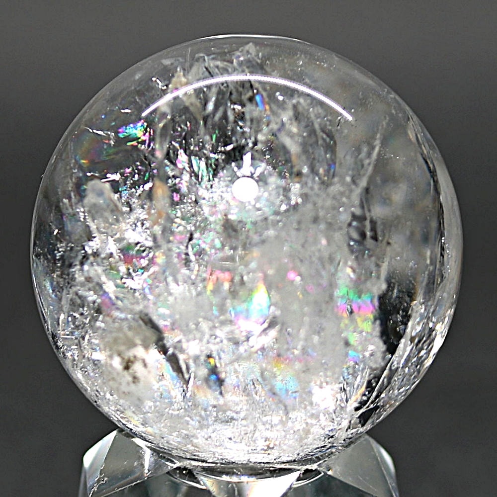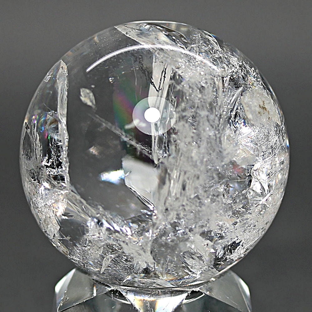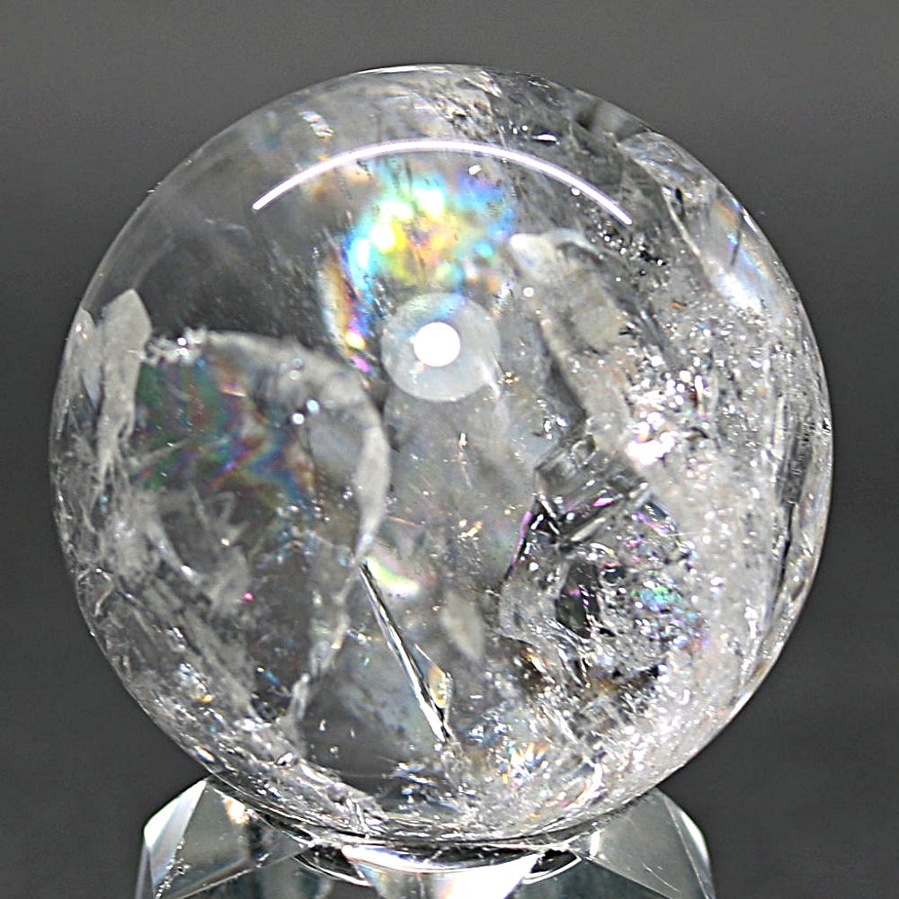 ご覧のお品は、価格を抑えつつも天然の虹をお楽しみいただける「ブラジル産レインボー水晶玉」でございます。