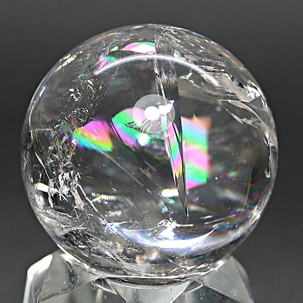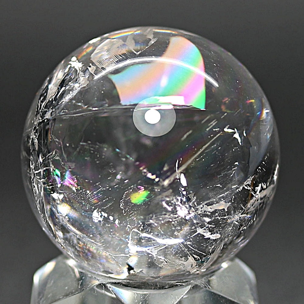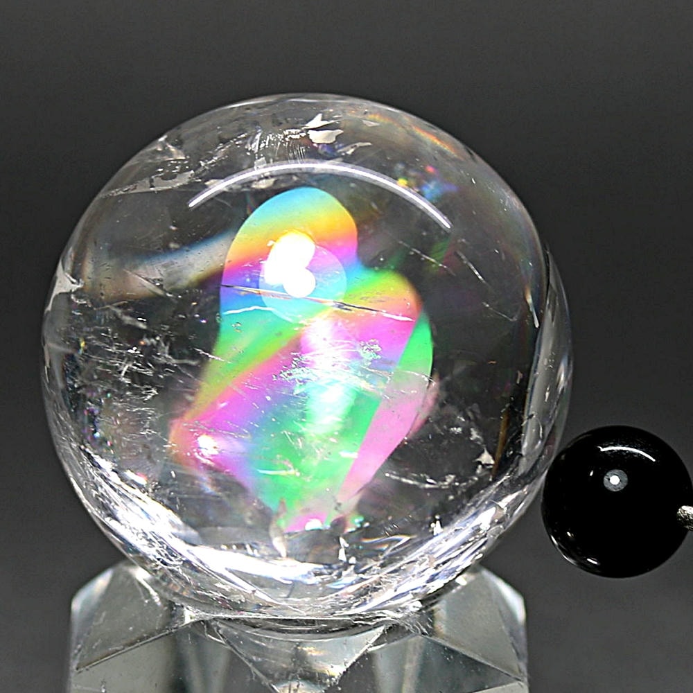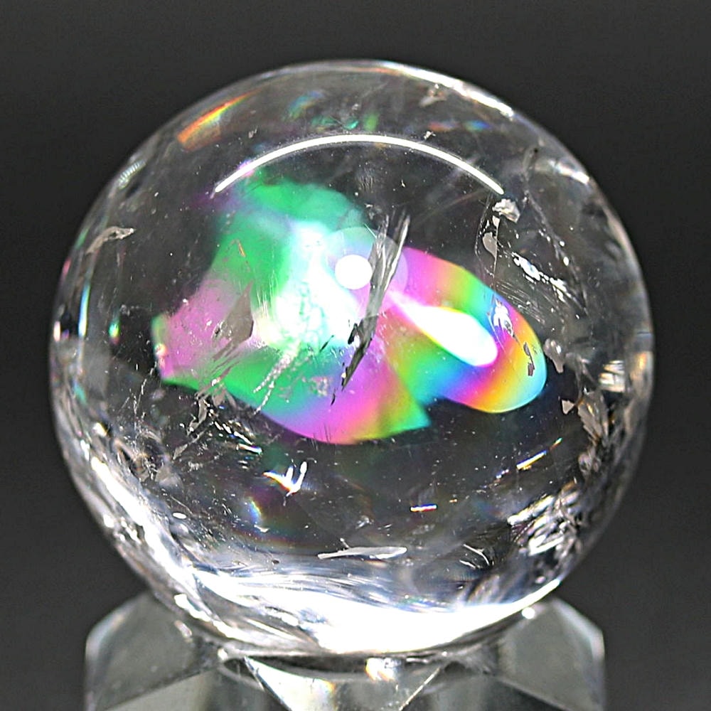 [高品質++]ブラジル産レインボー水晶玉/アイリスクォーツスフィア(丸玉直径約36.4mm)¥4,100クイックガイド送料