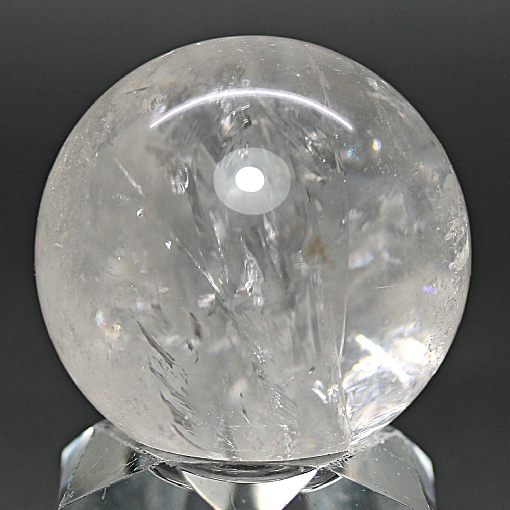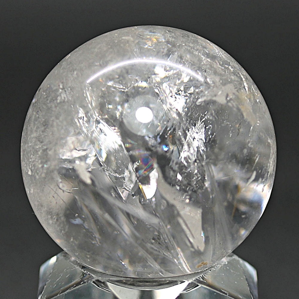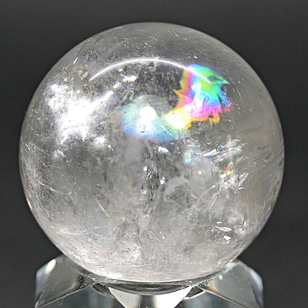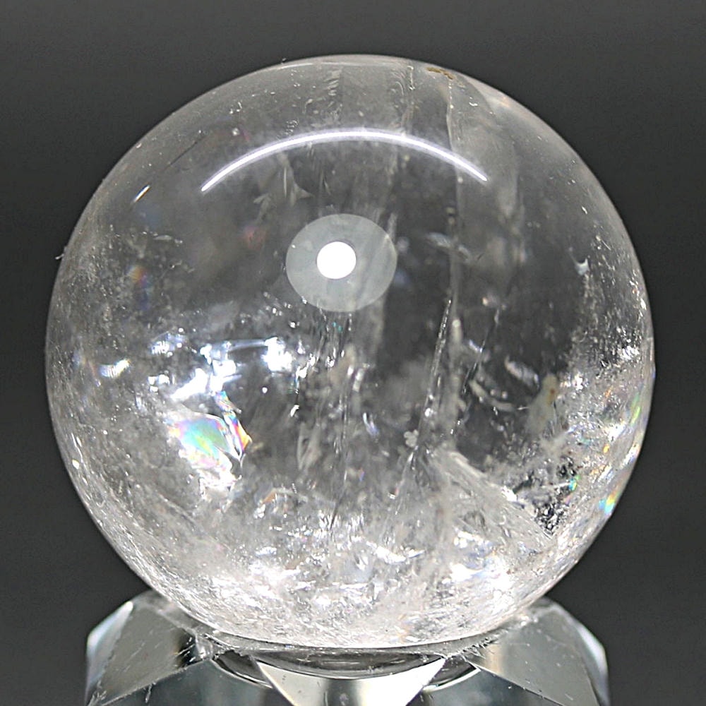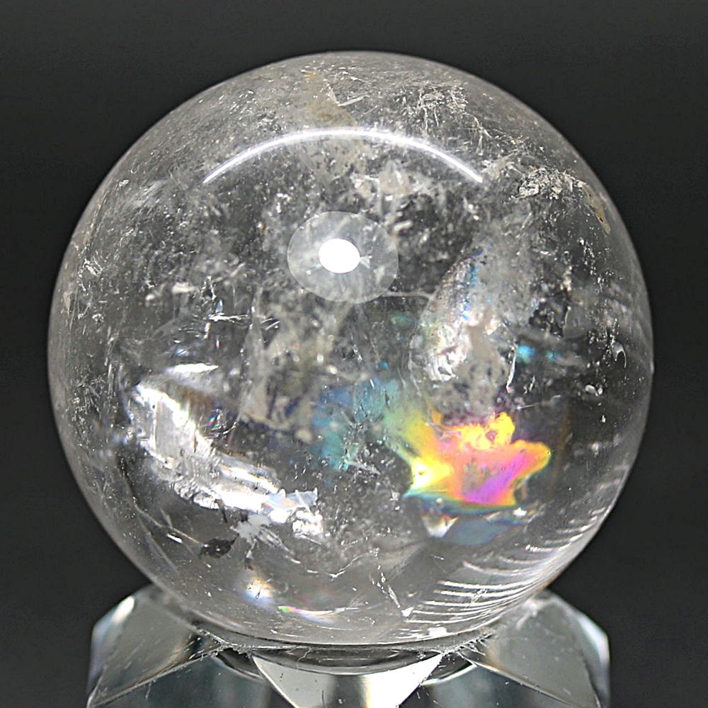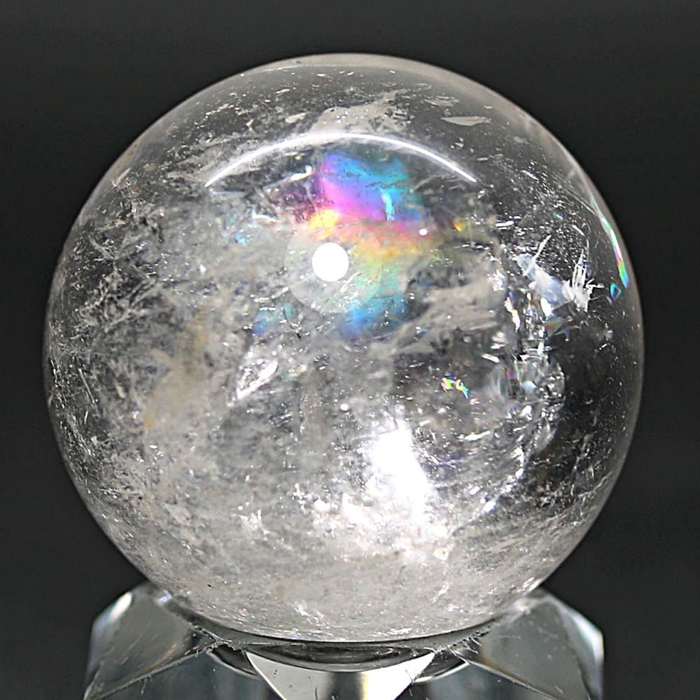 ご覧のお品は、価格を抑えつつも天然の虹をお楽しみいただける「ブラジル産レインボー水晶玉」でございます。