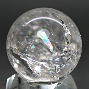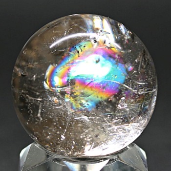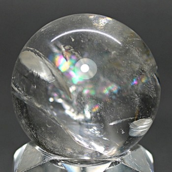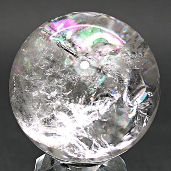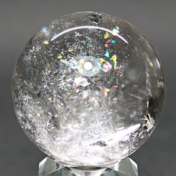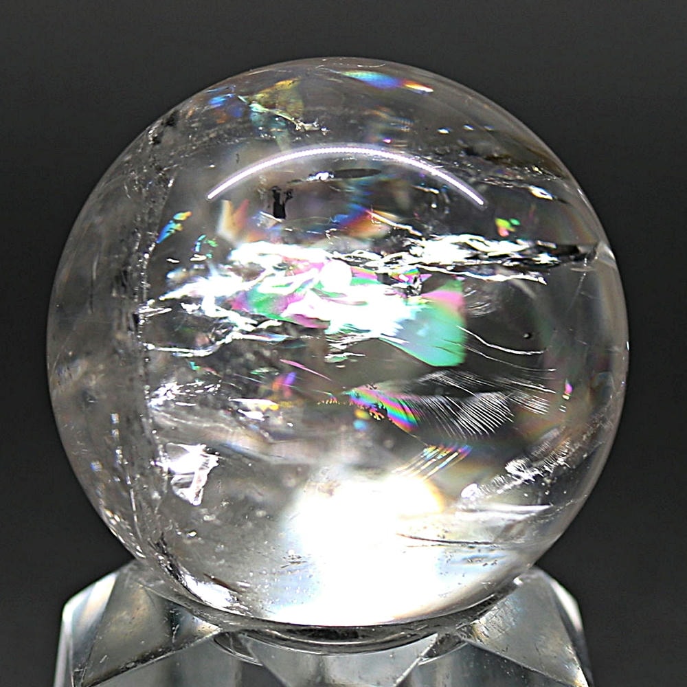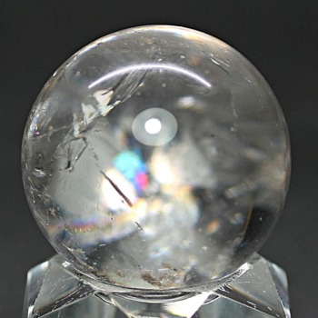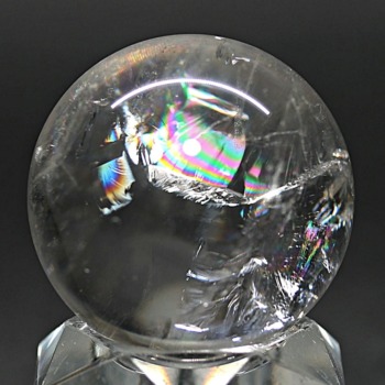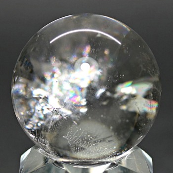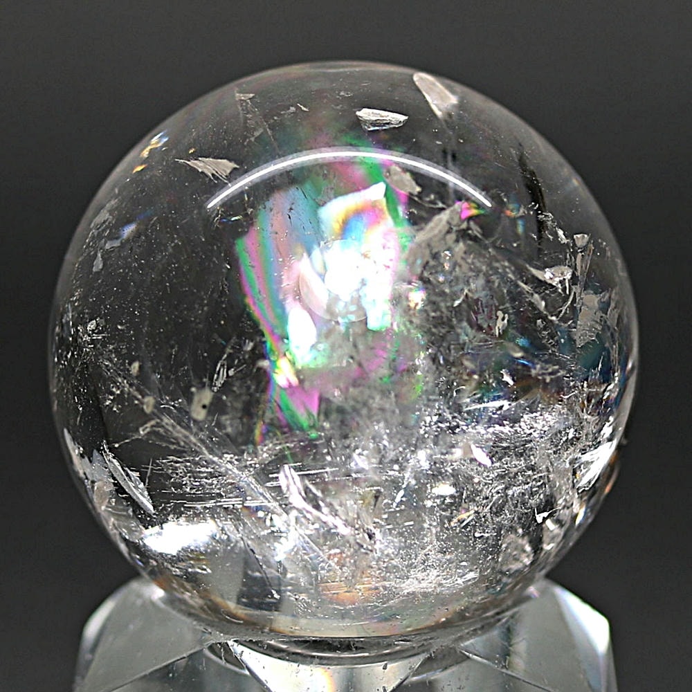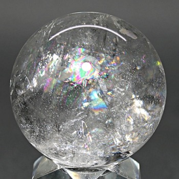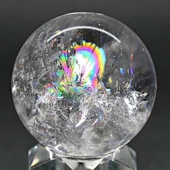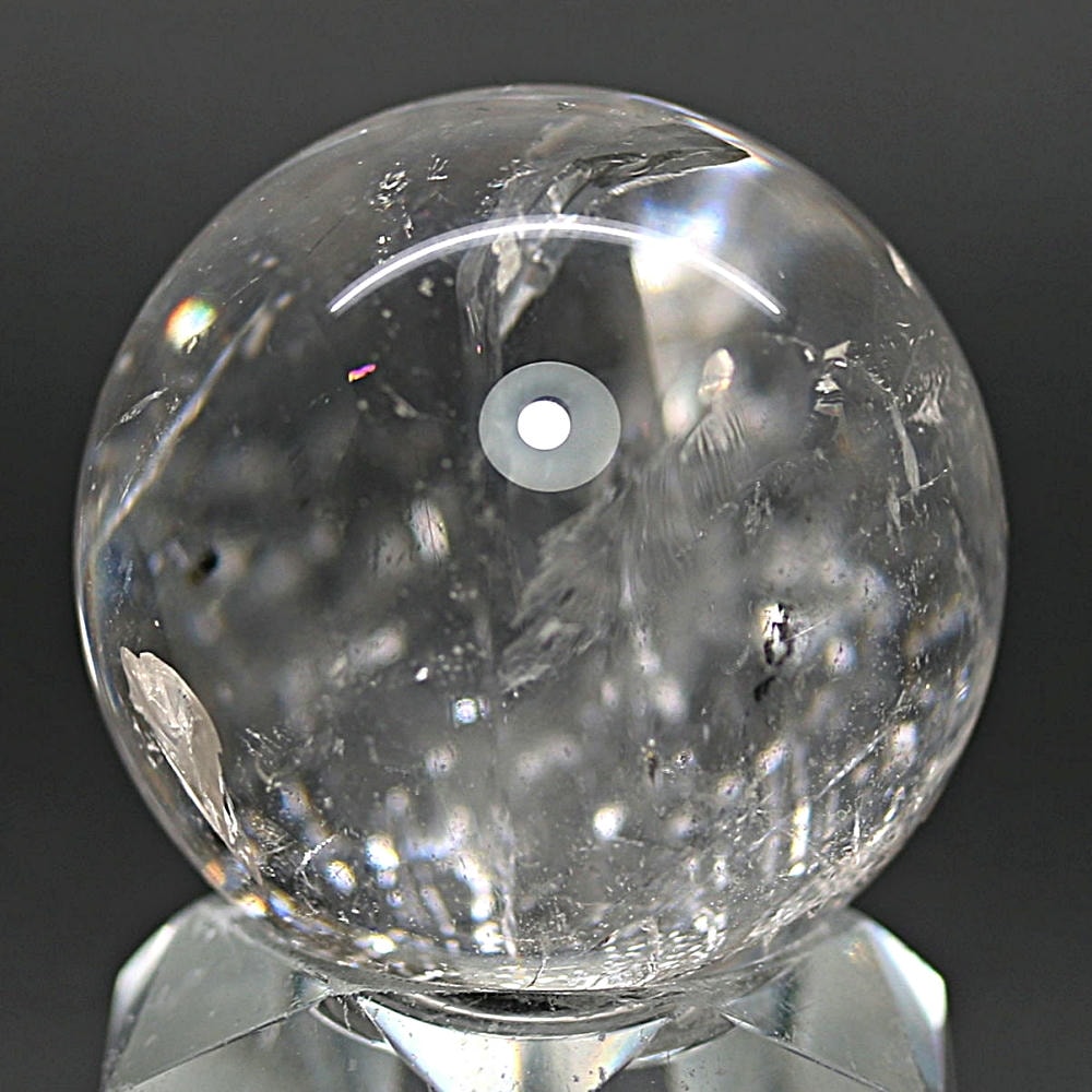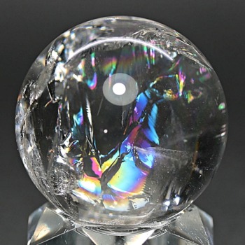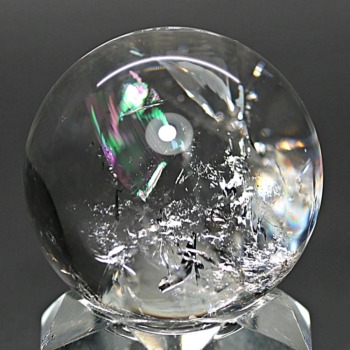 ご覧のお品は、透明度高い水晶内部に、美しい虹が現れるトップ品質に迫るクオリティの「ブラジル産天然レインボー水晶玉」でございます。