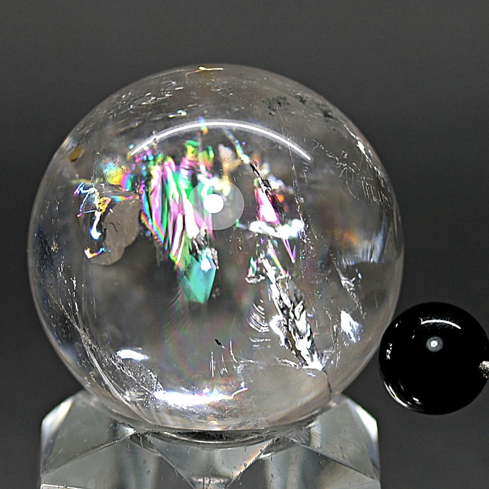 [高品質++]ブラジル産レインボー水晶玉/アイリスクォーツスフィア(丸玉直径約34.8mm)¥3,600クイックガイド送料