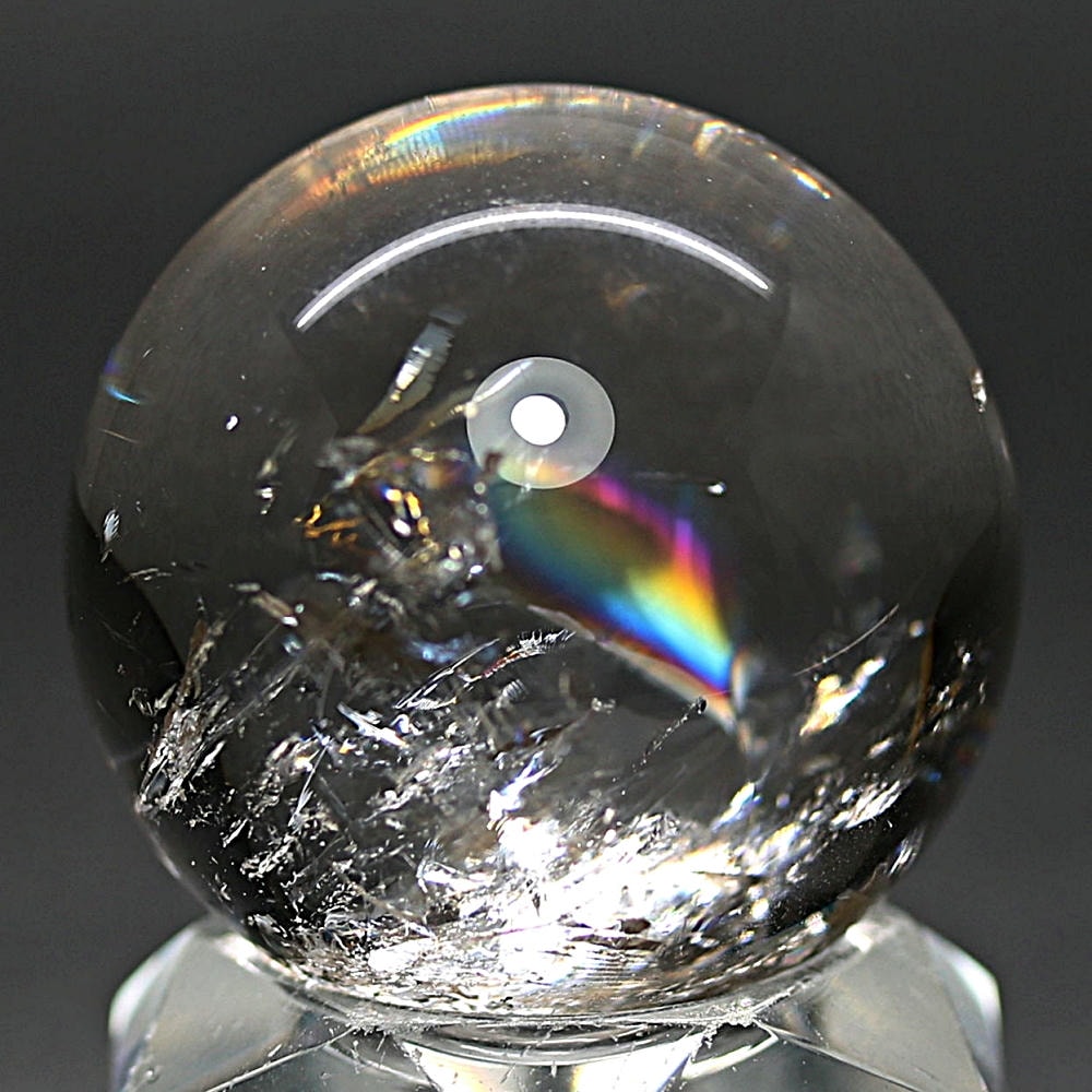 今回ご紹介のレインボー水晶玉は、約10年にわたり取引を続けている信頼ある工場より、品質を見極め厳選して買い付けたものでございます。