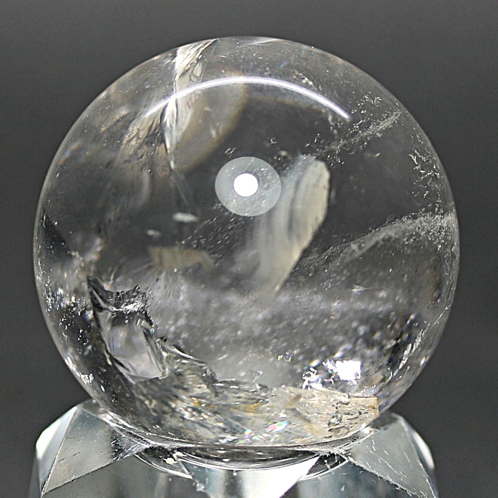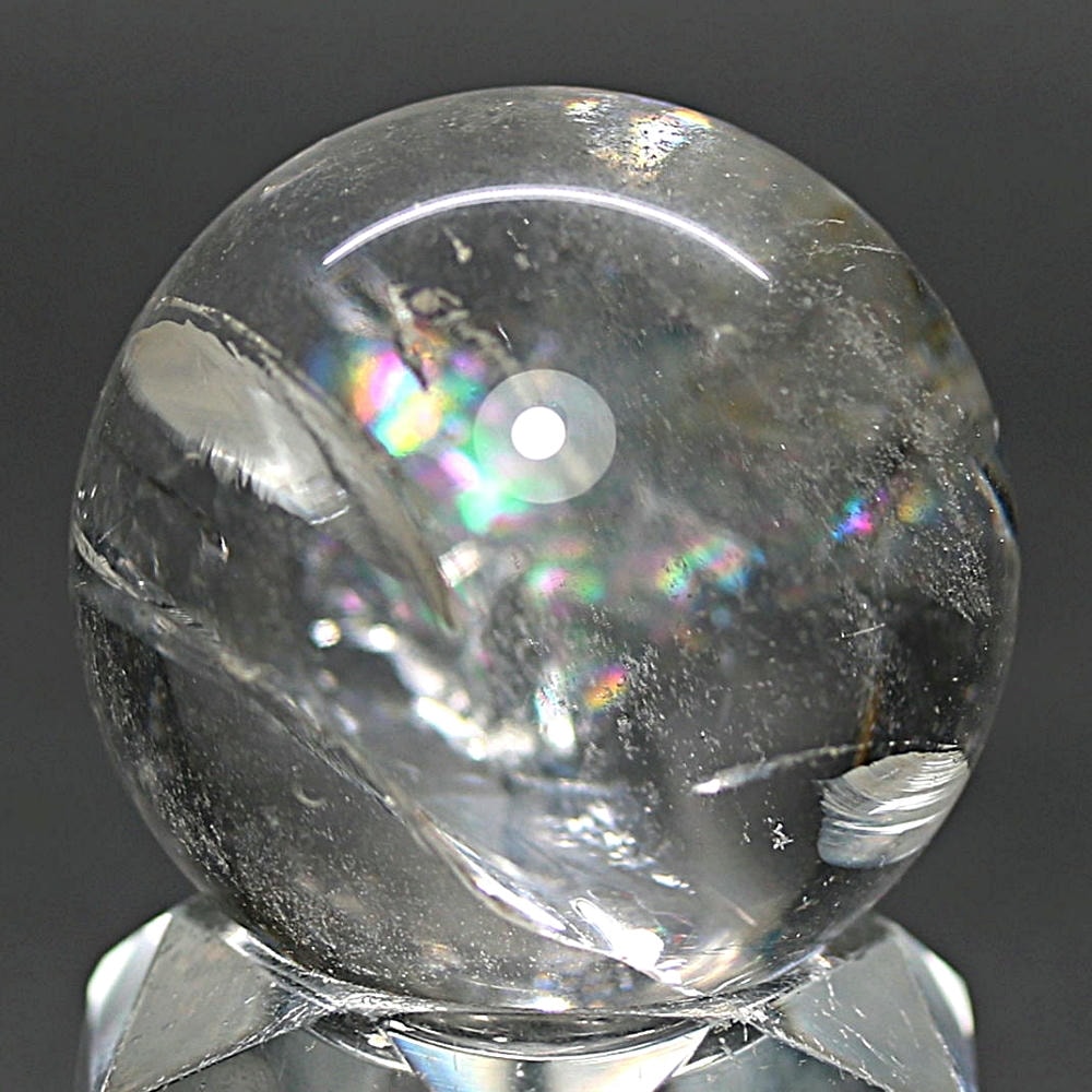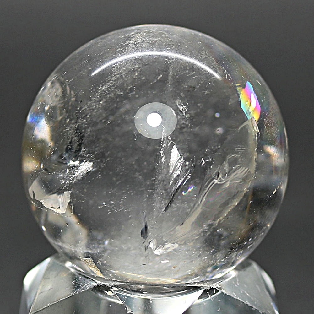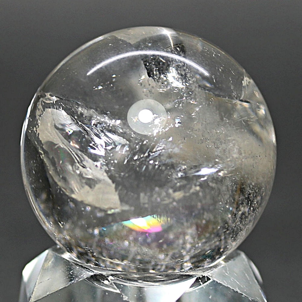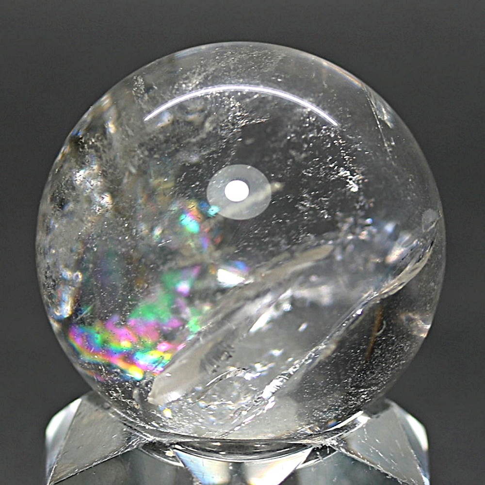 ご覧のお品は、価格を抑えつつも天然の虹をお楽しみいただける「ブラジル産レインボー水晶玉」でございます。