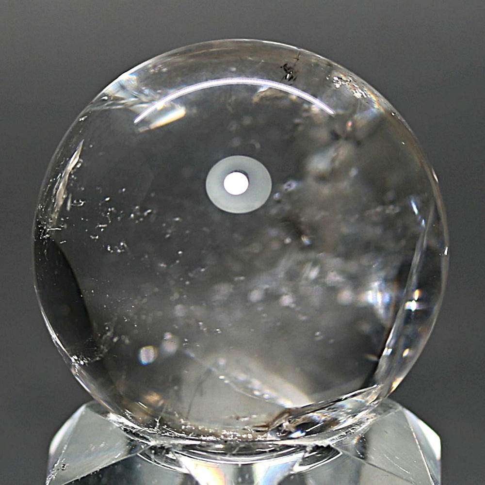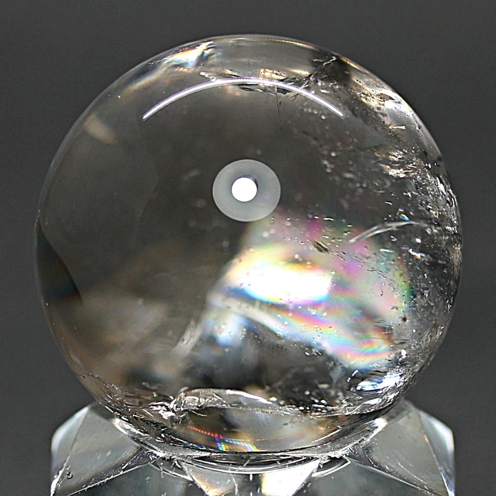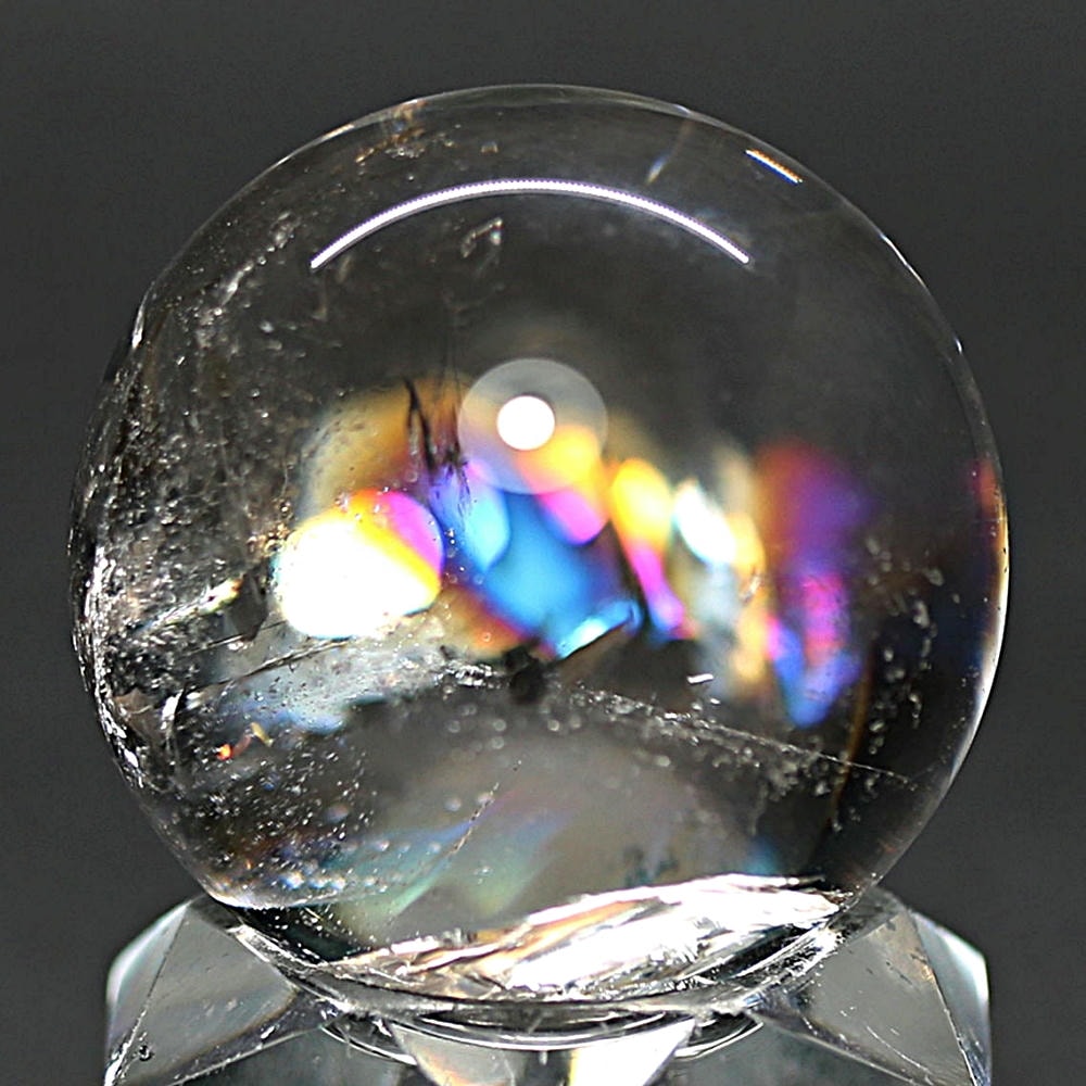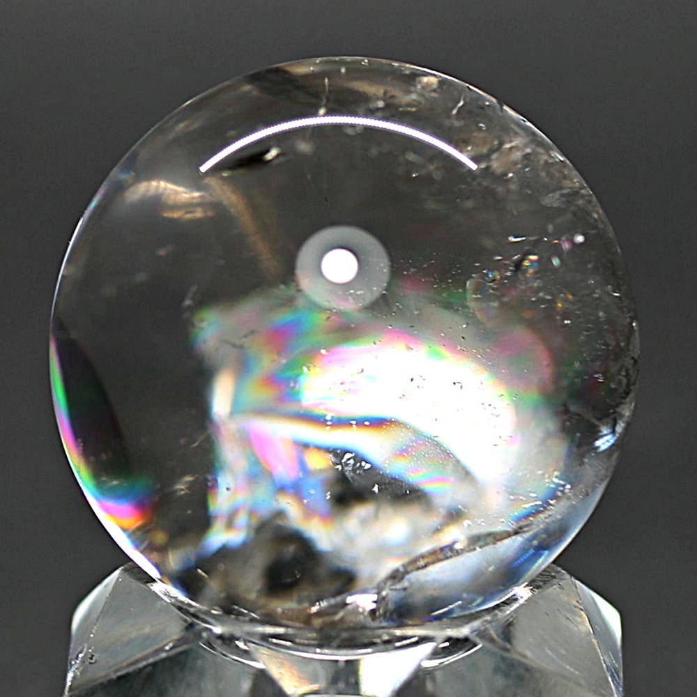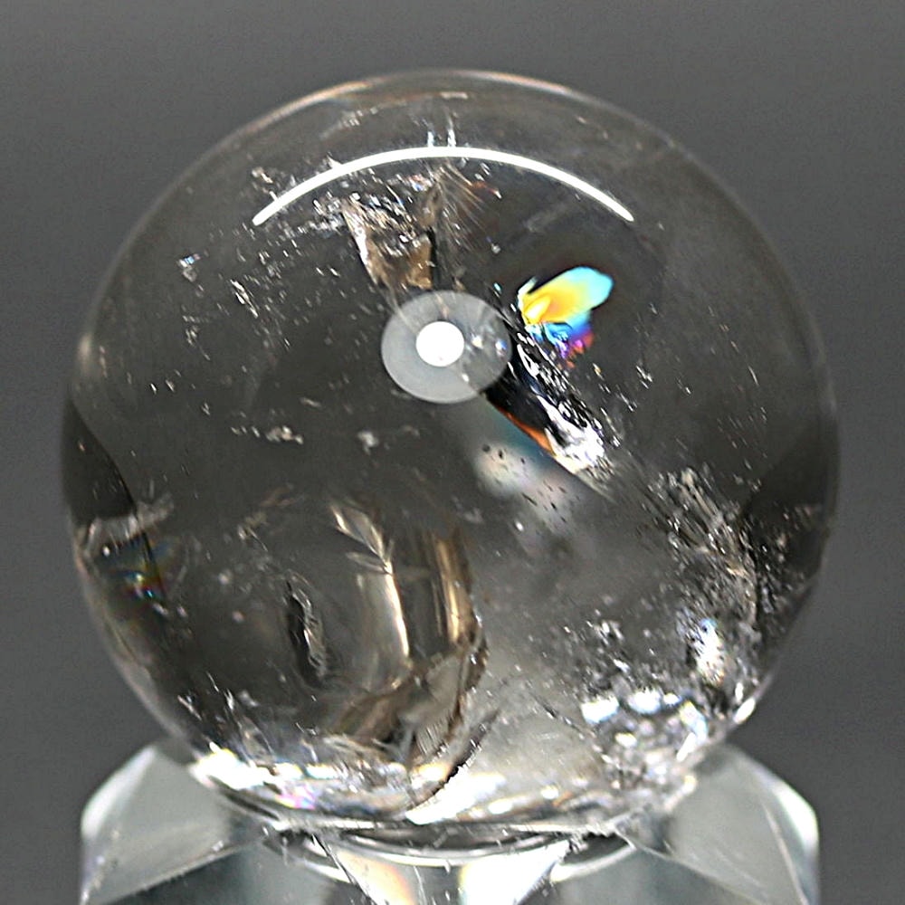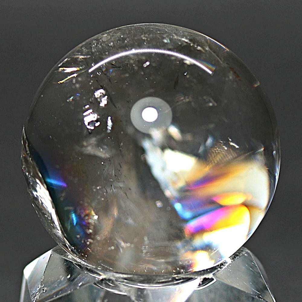 ご覧のお品は、価格を抑えつつも天然の虹をお楽しみいただける「ブラジル産レインボー水晶玉」でございます。