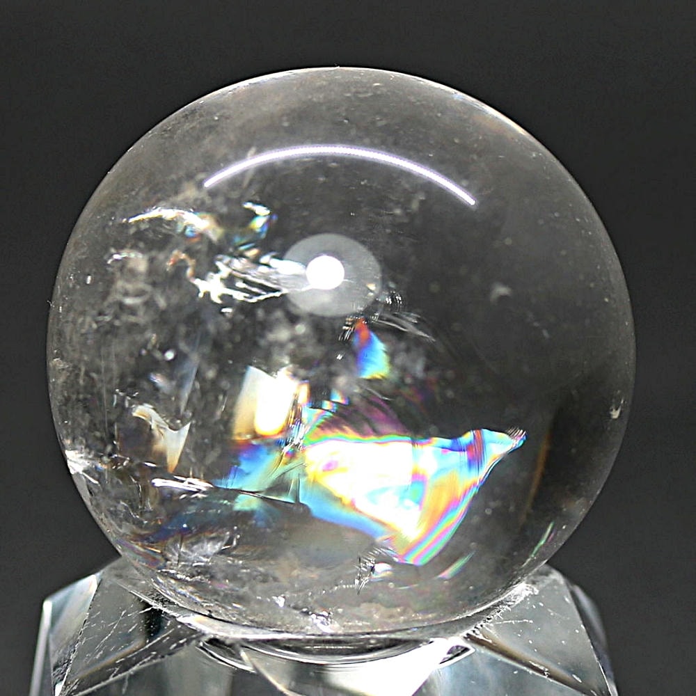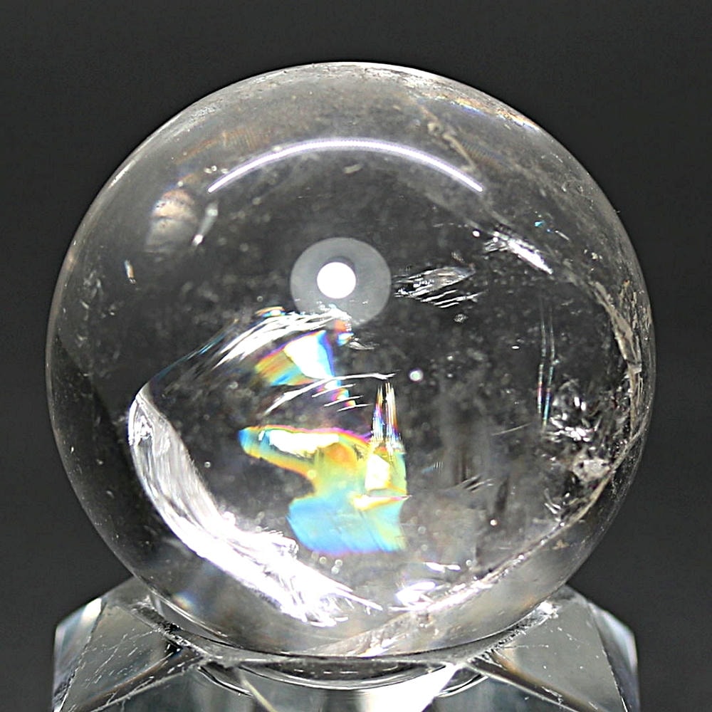 ご覧のお品は、価格を抑えつつも天然の虹をお楽しみいただける「ブラジル産レインボー水晶玉」でございます。