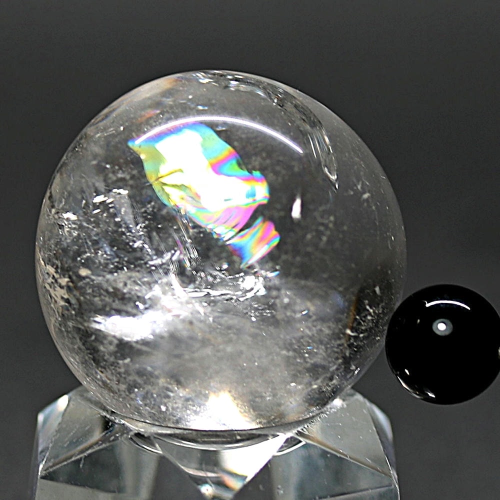 [特別価格/高品質]ブラジル産レインボー水晶玉/アイリスクォーツスフィア(丸玉直径約32.4mm)¥1,500クイックガイド送料