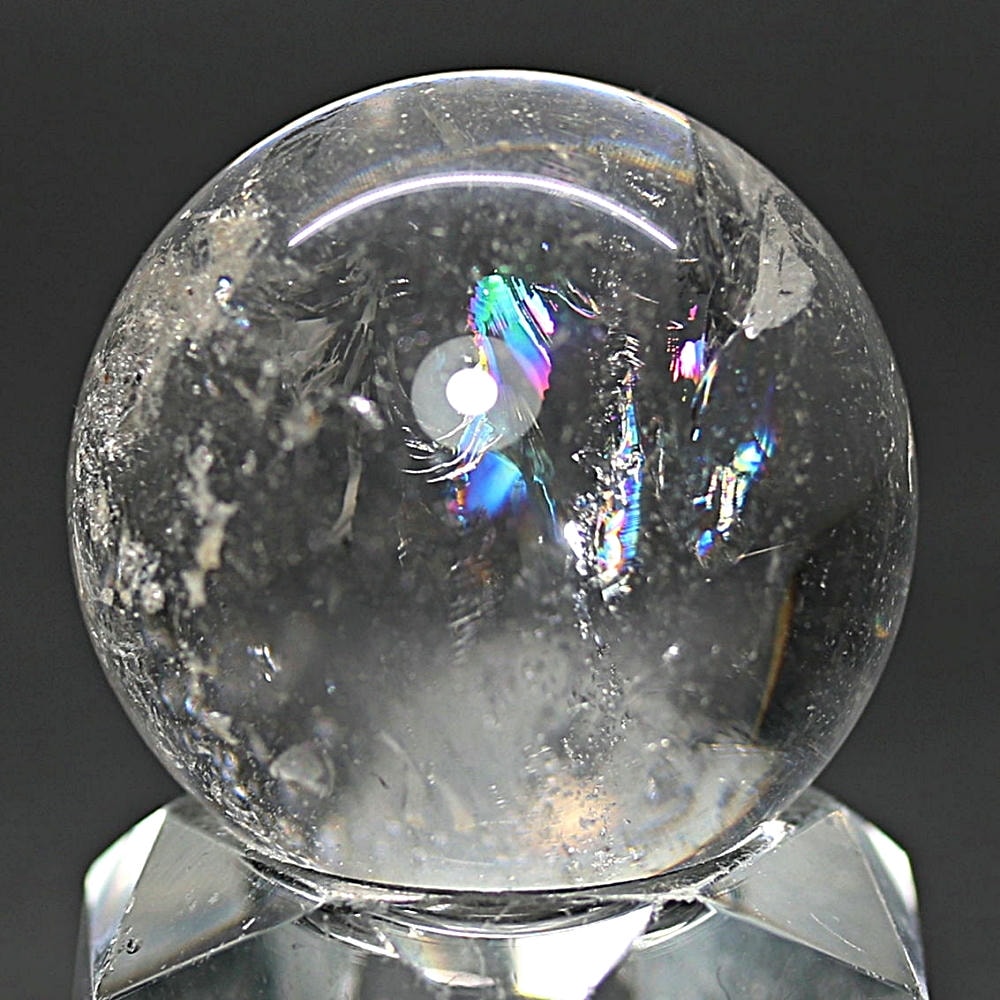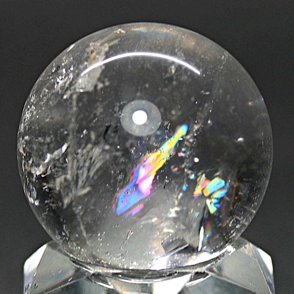 ご覧のお品は、価格を抑えつつも天然の虹をお楽しみいただける「ブラジル産レインボー水晶玉」でございます。