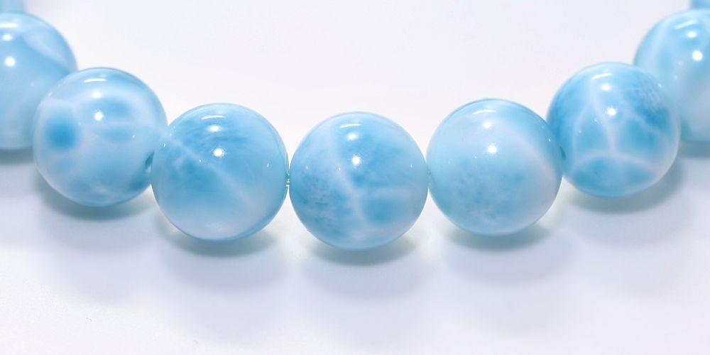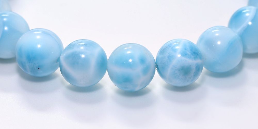 唯一の産地「ドミニカ共和国」で採掘される本物のラリマーというのは当然のことですが、ブレスレットとして欠け凹み少なく不純物も可能な限り少ない良質ラリマー粒を使用しております。