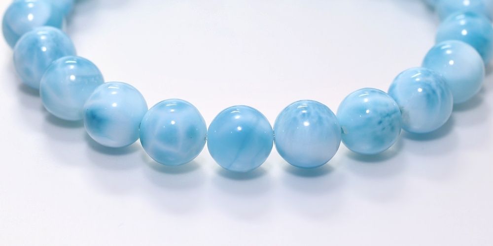唯一の産地「ドミニカ共和国」で採掘される本物のラリマーというのは当然のことですが、ブレスレットとして欠け凹み少なく不純物も可能な限り少ない良質ラリマー粒を使用しております。