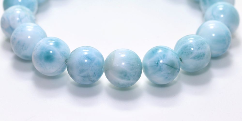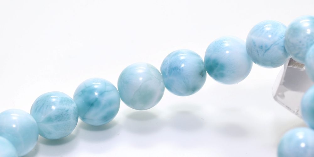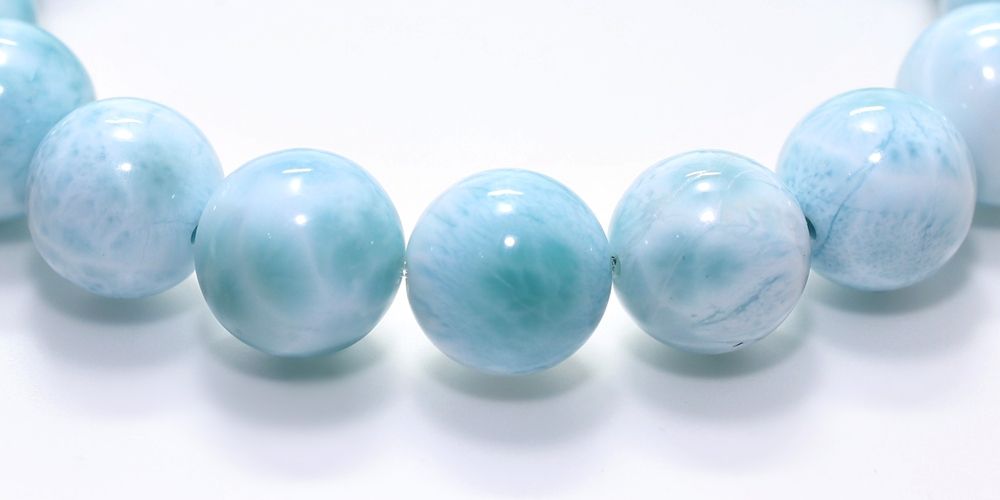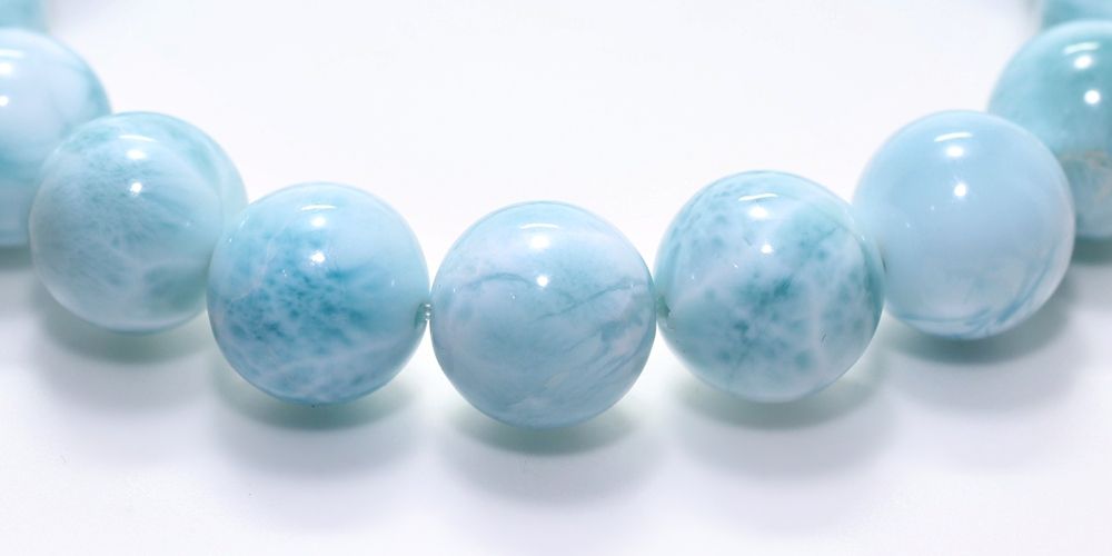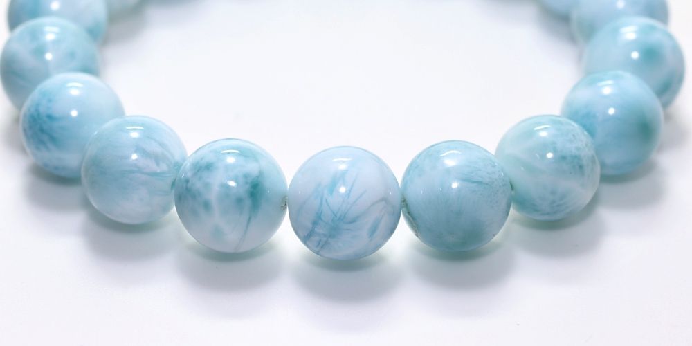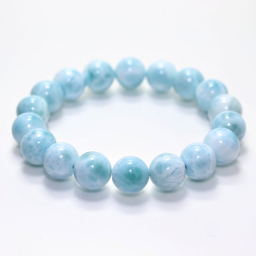 ご覧の淡いグリーンブルーのラリマーブレスレットは、ゆっくりと時間が流れるバハマのカリブ海を連想させ、漂う波模様が不思議と穏やかな気持ちにしてくれそうです。