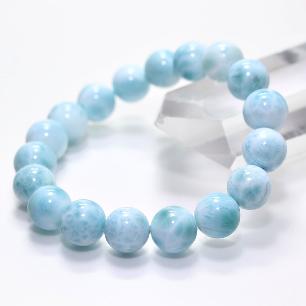 愛と平和の石として世界三大ヒーリングストーンに数えられるラリマーの中から、グリーンブルーの色合いがなんとも愛おしいラリマーブレスレットをご用意いたしました。