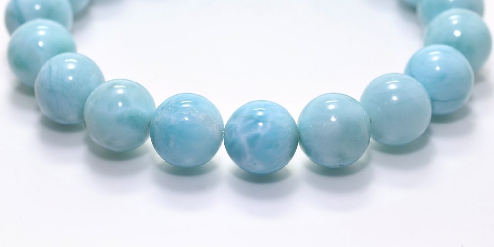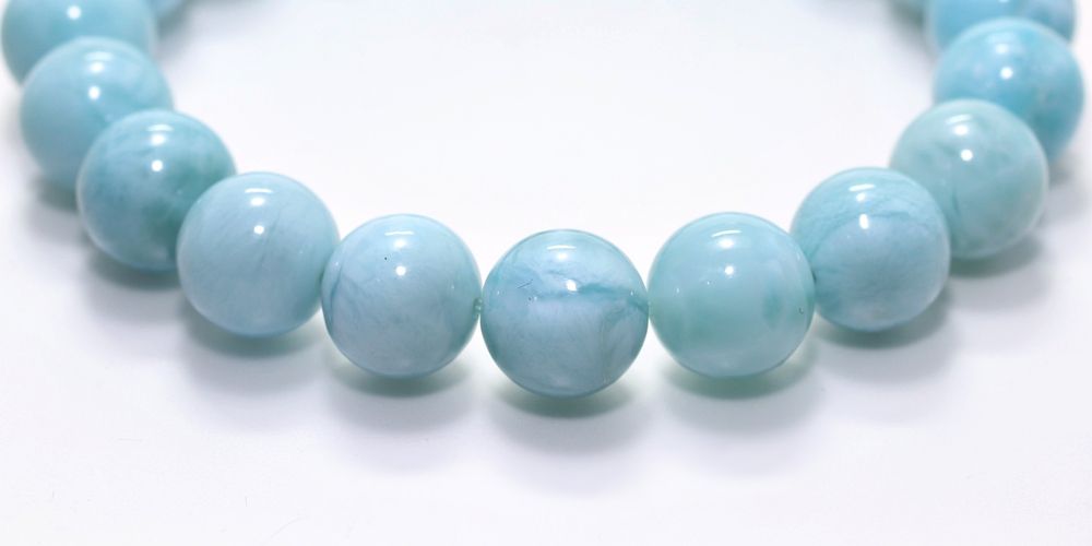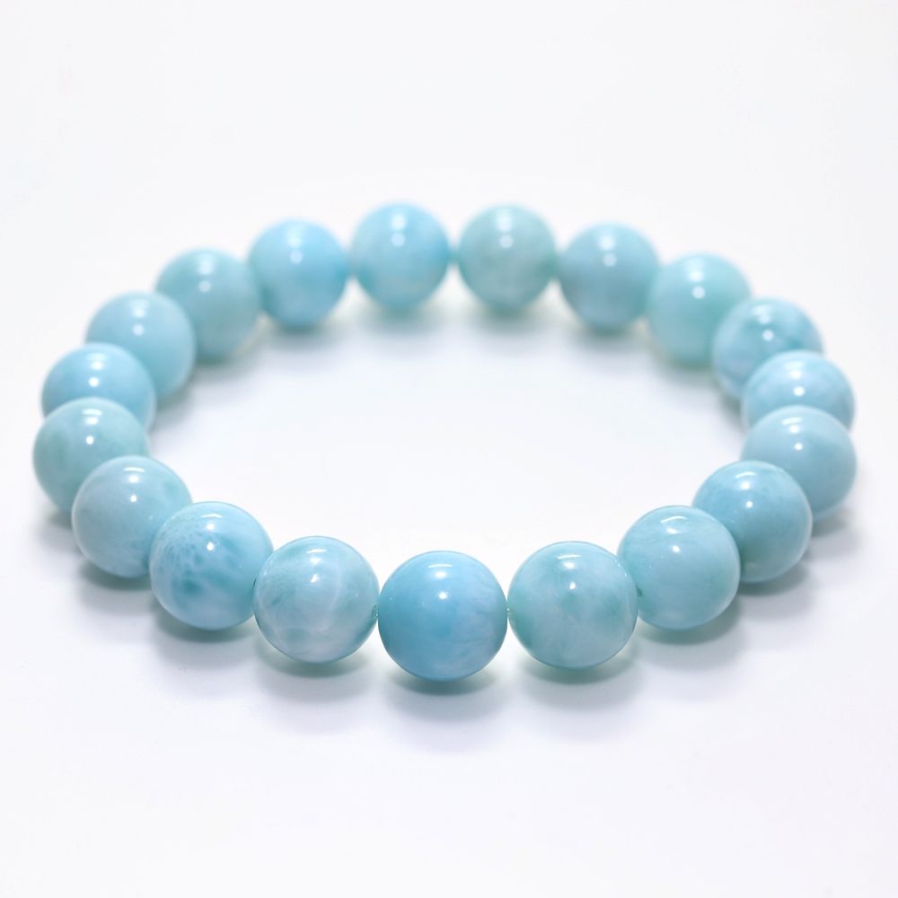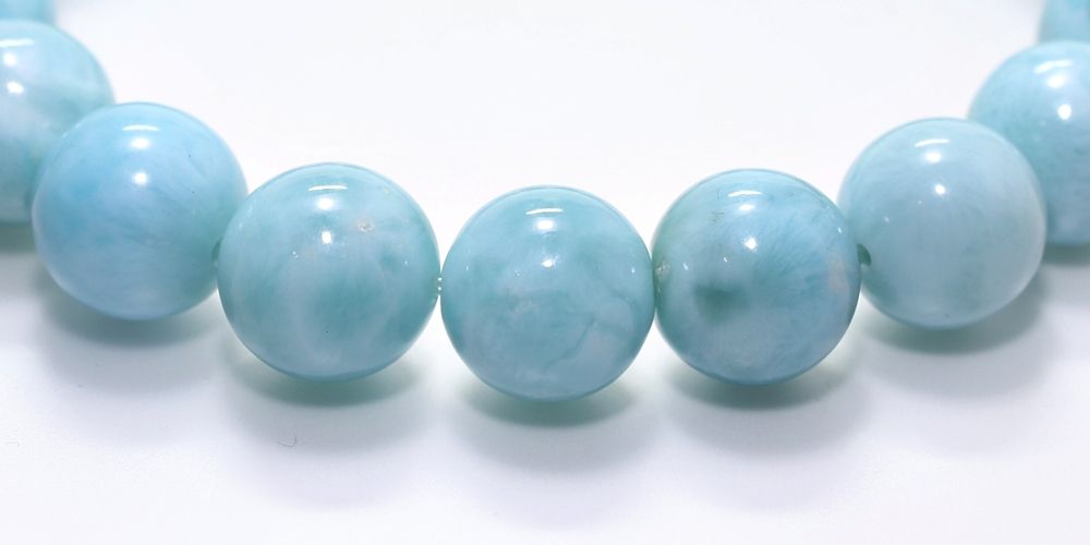 ご覧の淡いグリーンブルーのラリマーブレスレットは、ゆっくりと時間が流れるバハマのカリブ海を連想させ、漂う波模様が不思議と穏やかな気持ちにしてくれそうです。