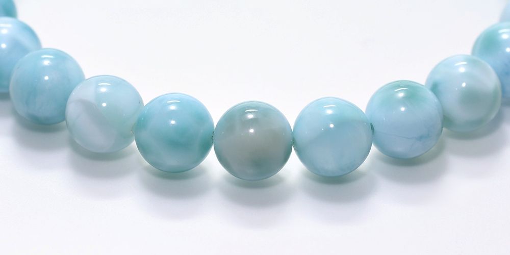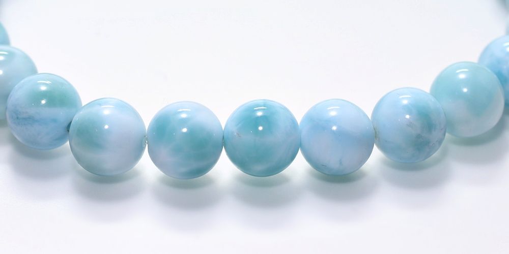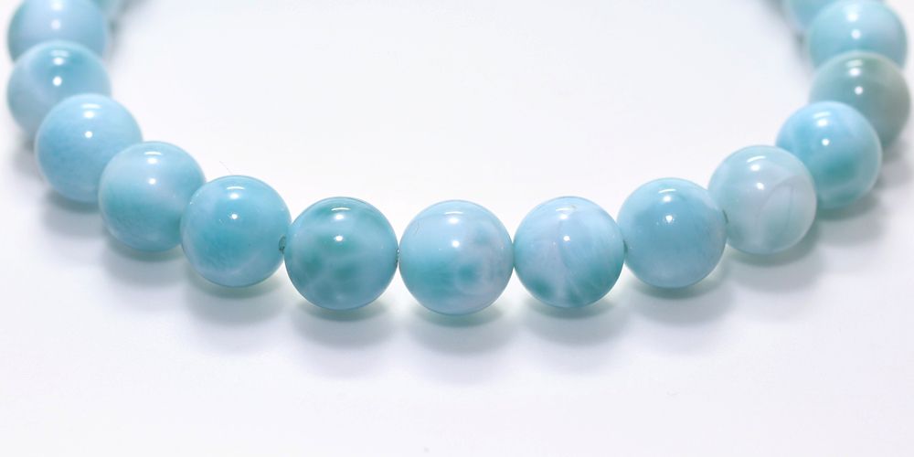 ご覧の淡いグリーンブルーのラリマーブレスレットは、ゆっくりと時間が流れるバハマのカリブ海を連想させ、漂う波模様が不思議と穏やかな気持ちにしてくれそうです。