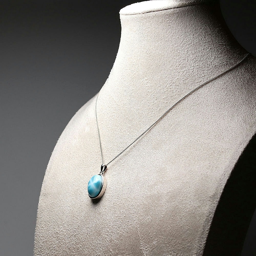 [高品質++]ラリマーペンダントトップ/ブルーペクトライト(シルバー925/オーバル/国内加工・ほぼトップ品質!)