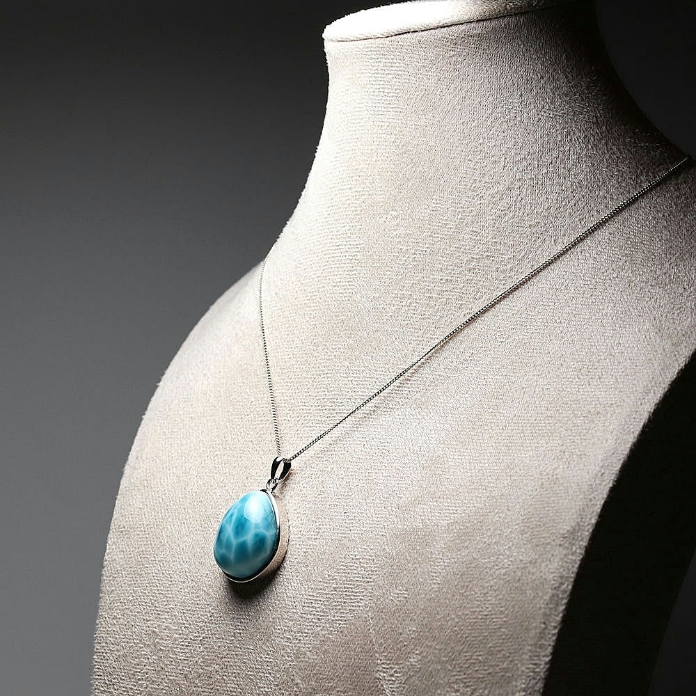 [高品質++]ラリマーペンダントトップ/ブルーペクトライト(シルバー925/ドロップ/国内加工・ほぼトップ品質!)¥59,000クイックガイド送料