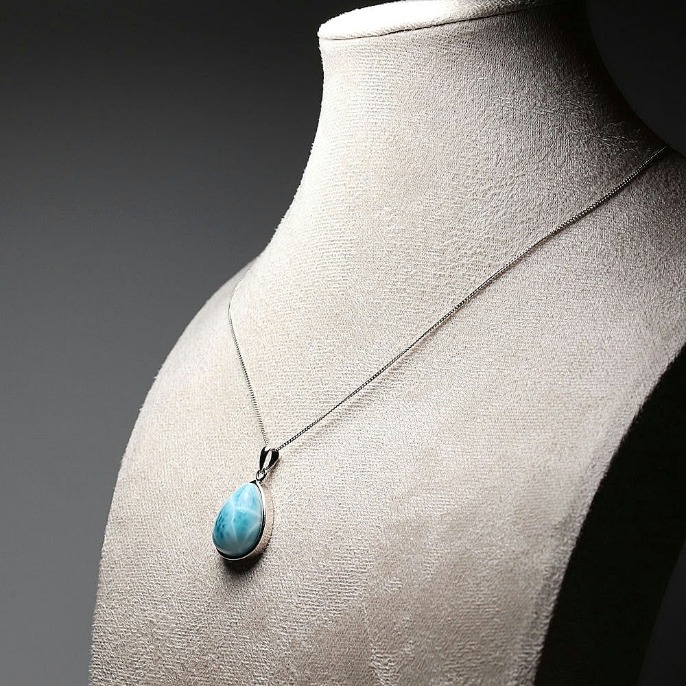 [高品質++]ラリマーペンダントトップ/ブルーペクトライト(シルバー925/ドロップ/国内加工・ほぼトップ品質!)¥37,000クイックガイド送料