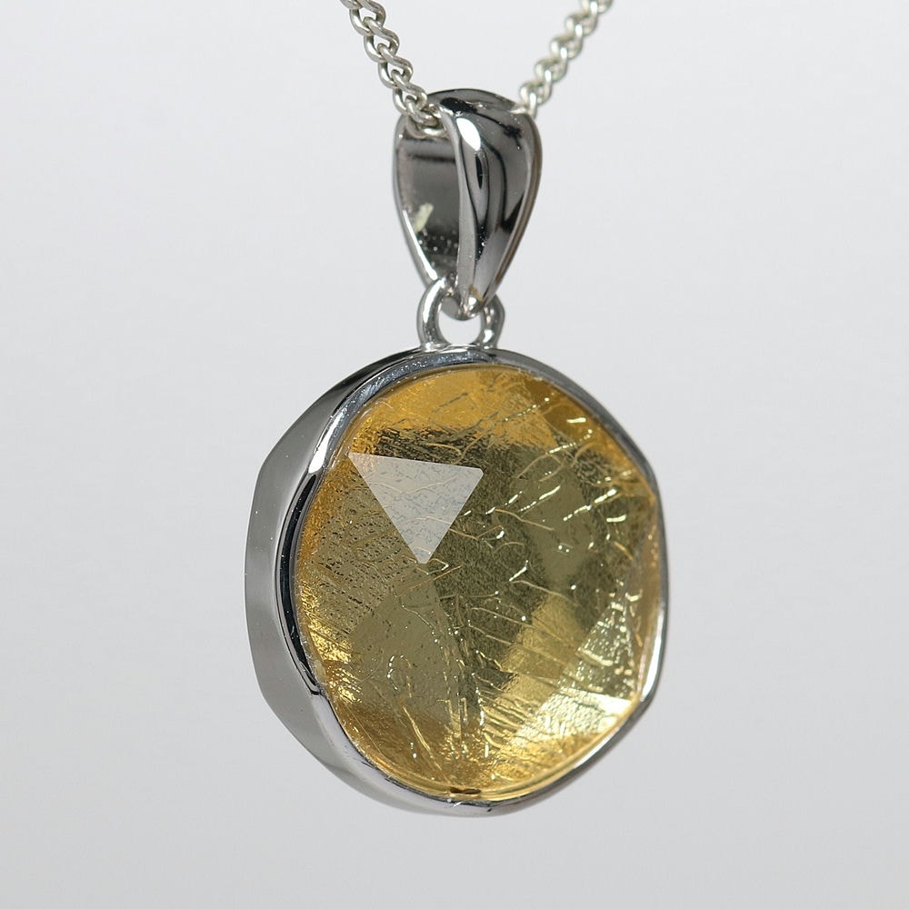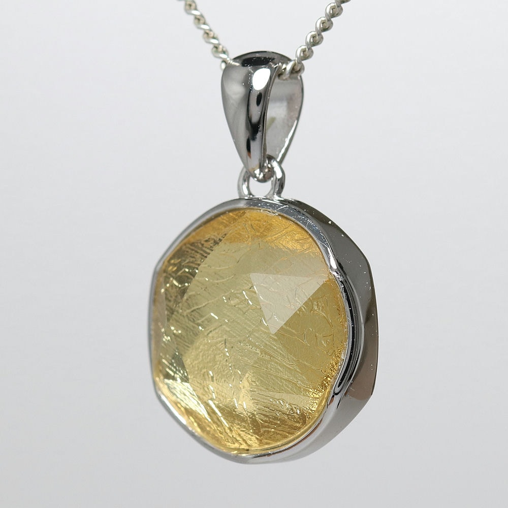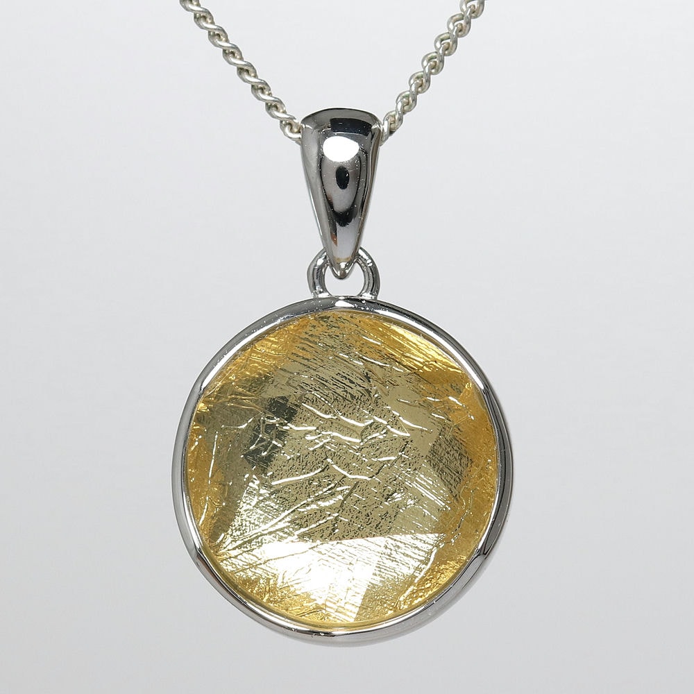 ギベオン隕石に、六芒星を象った両面コーティングを施すことでキラキラと輝く美しいペンダントトップに仕上げました。