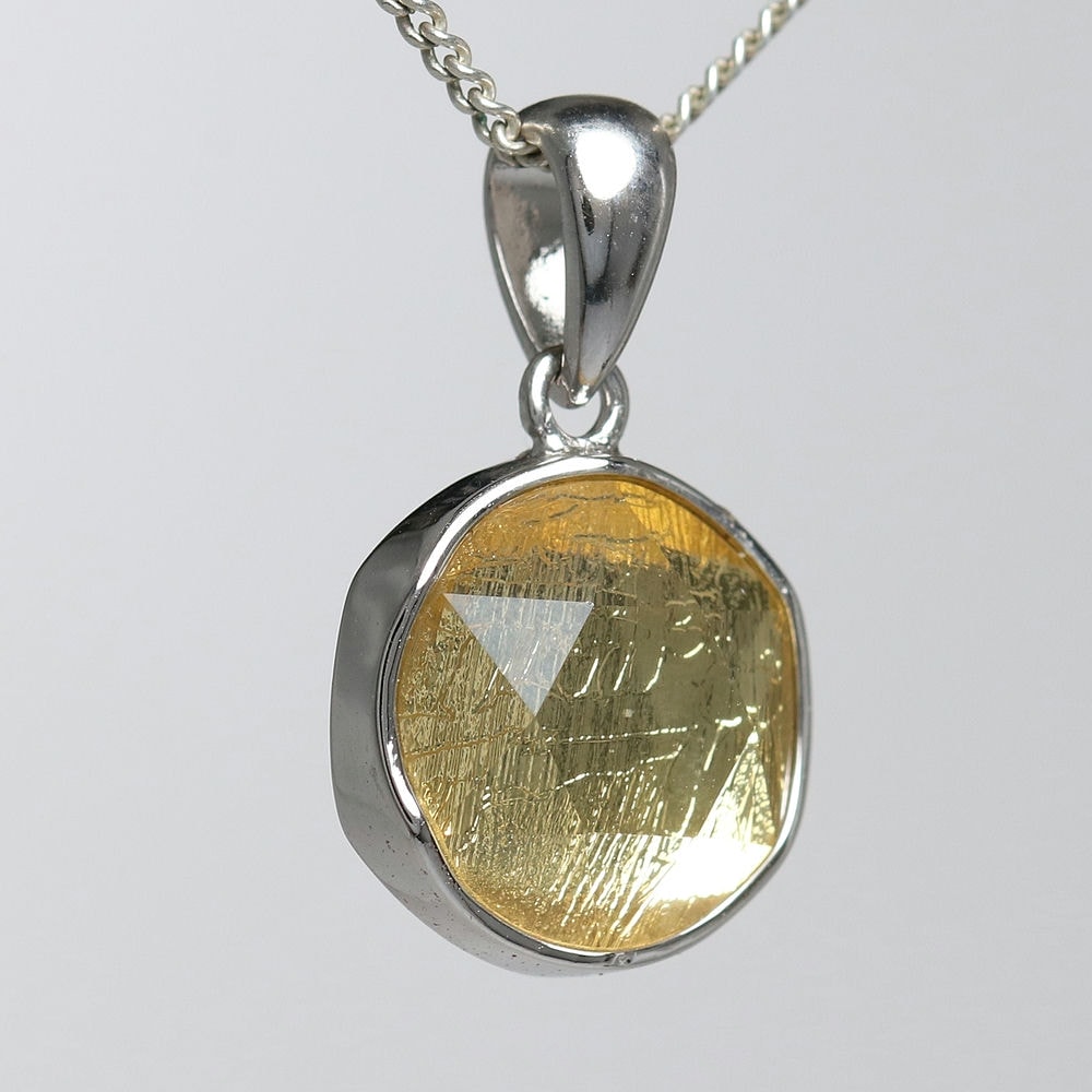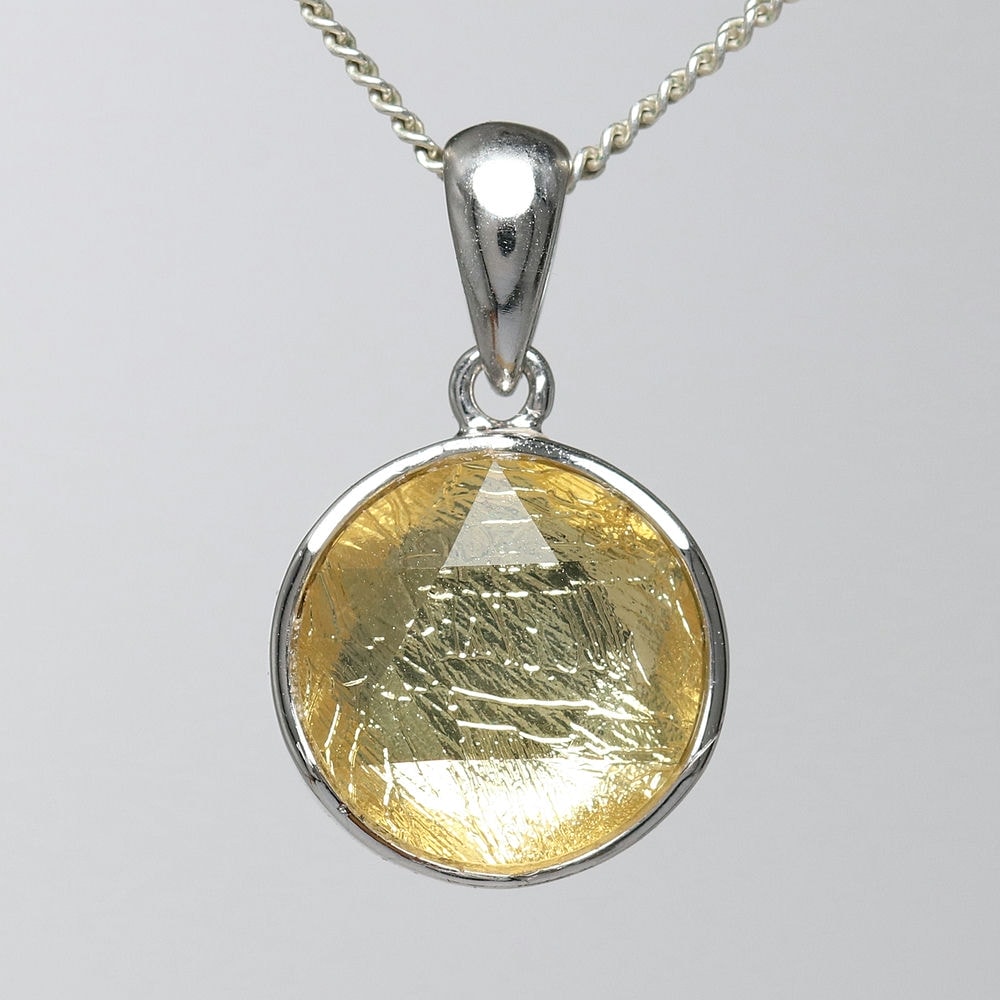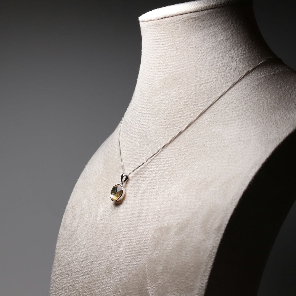 ギベオン隕石に、六芒星を象った両面コーティングを施すことでキラキラと輝く美しいペンダントトップに仕上げました。