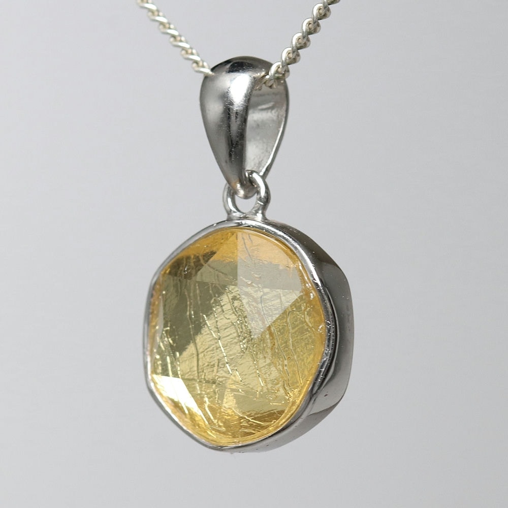 [個別撮影/Sサイズ11mm]ギベオン隕石ヘキサゴンペンダントトップ(イエローカラー/六芒星カット)