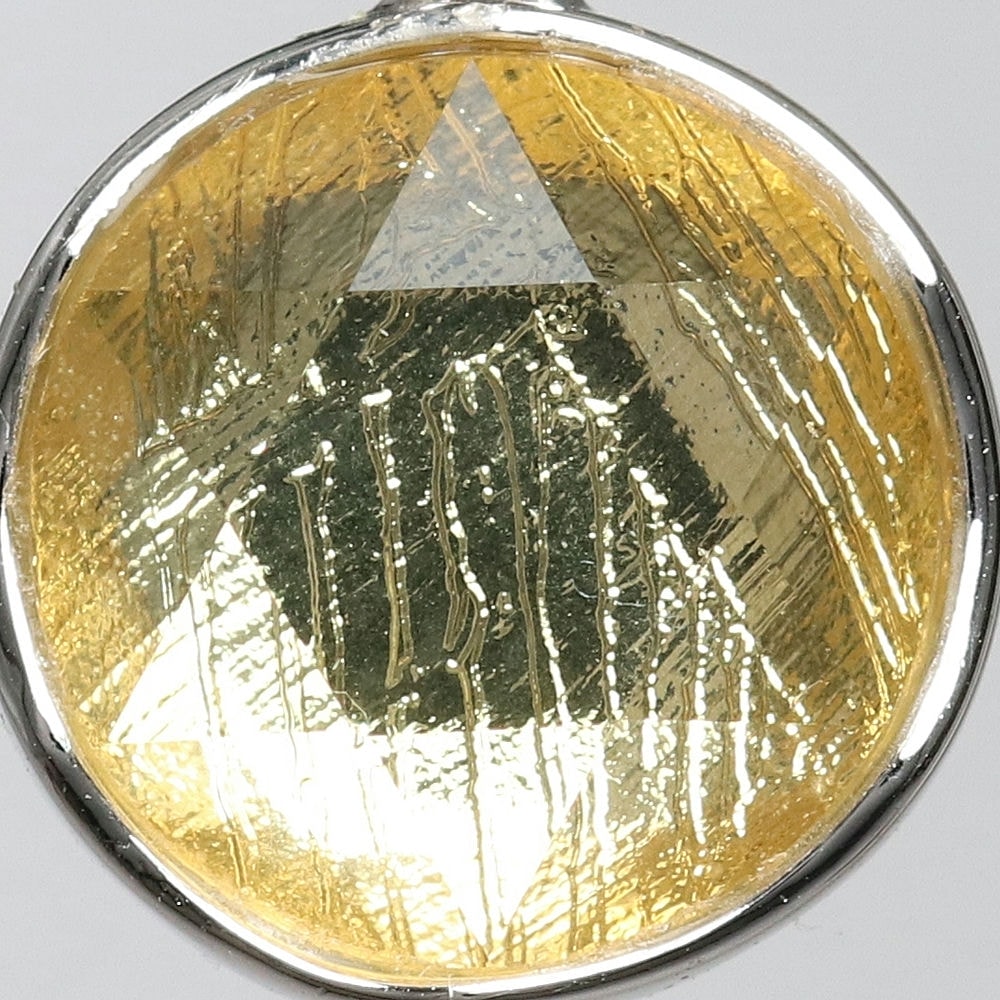 ギベオン隕石に、六芒星を象った両面コーティングを施すことでキラキラと輝く美しいペンダントトップに仕上げました。