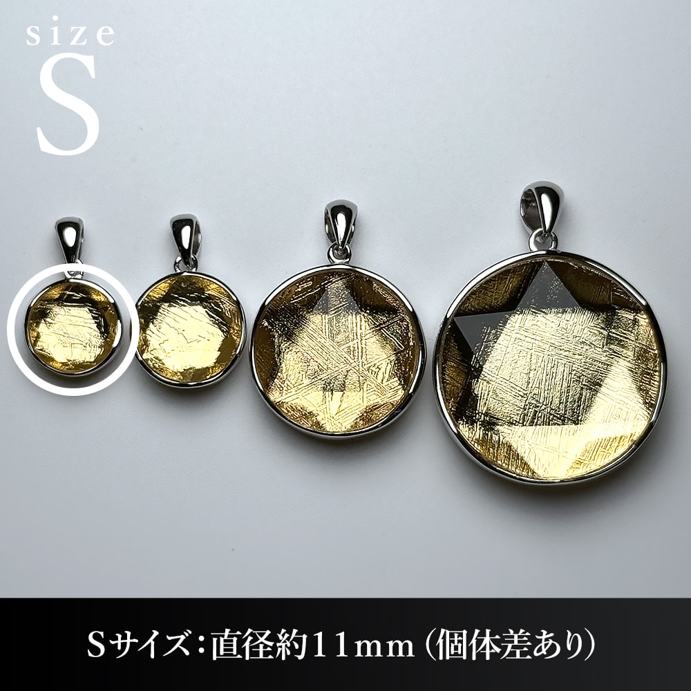 こちらのお品は、直径11mmの小さめサイズ(S)の、ギベオンヘキサゴンペンダントトップでございます。