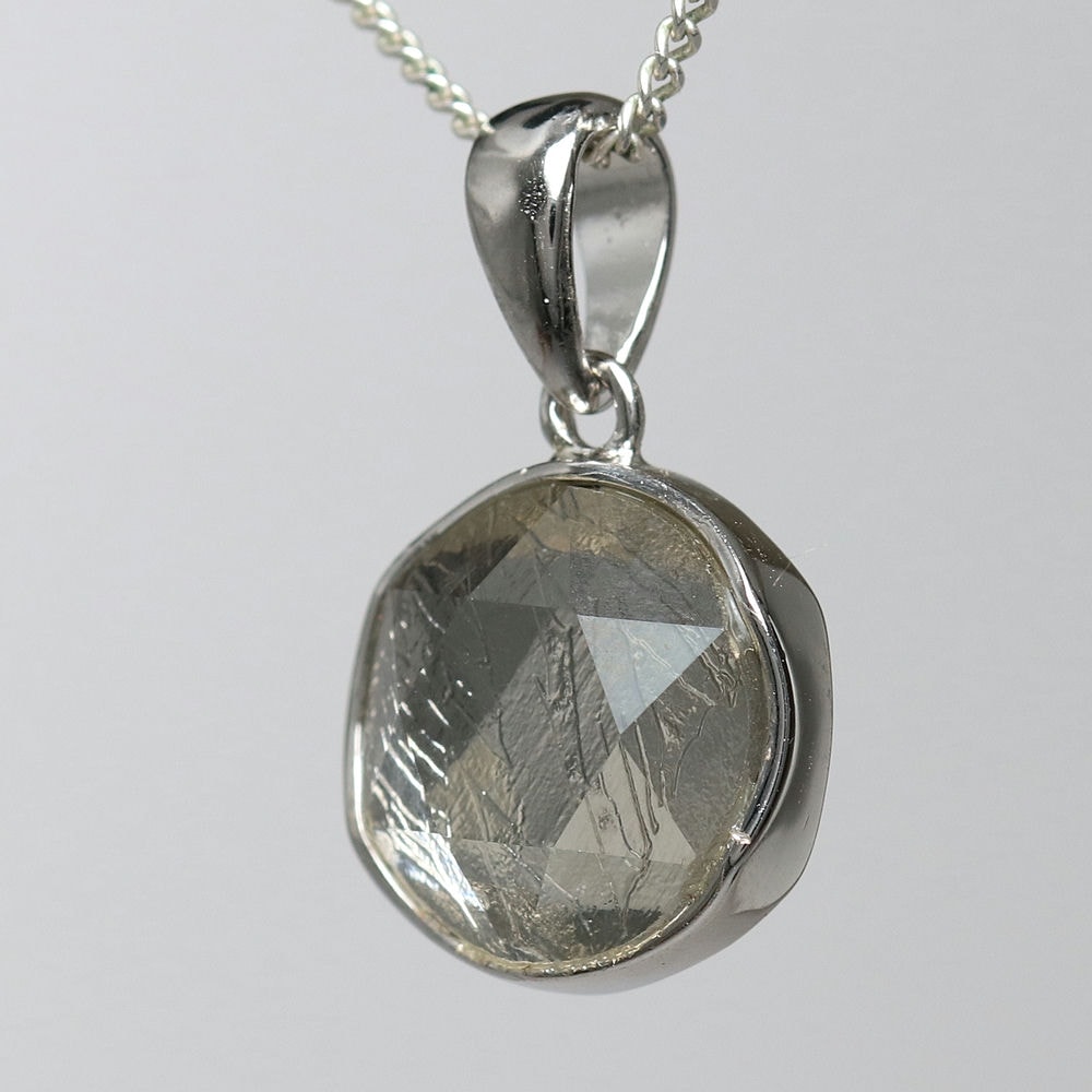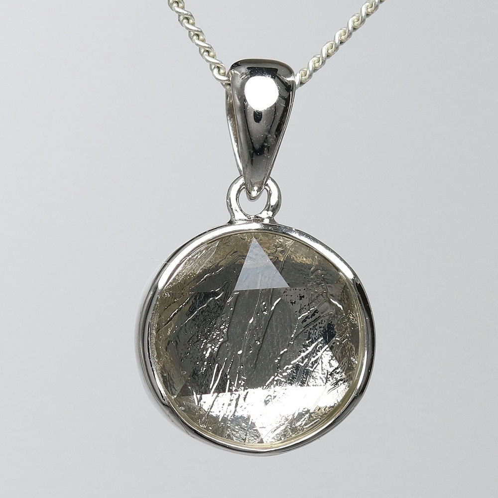 ギベオン隕石に、六芒星を象った両面コーティングを施すことでキラキラと輝く美しいペンダントトップに仕上げました。