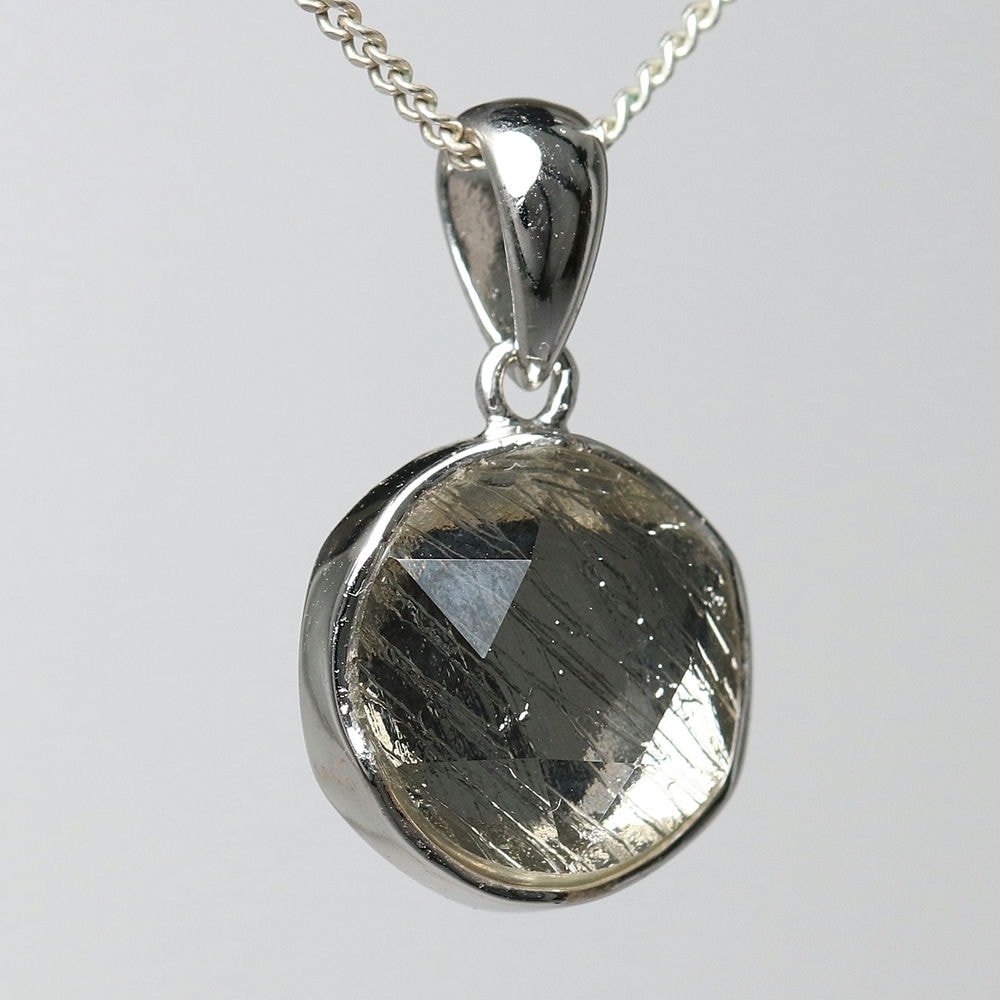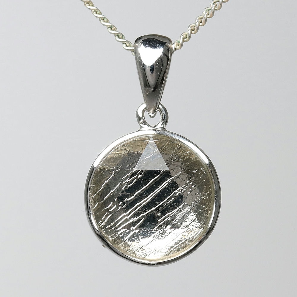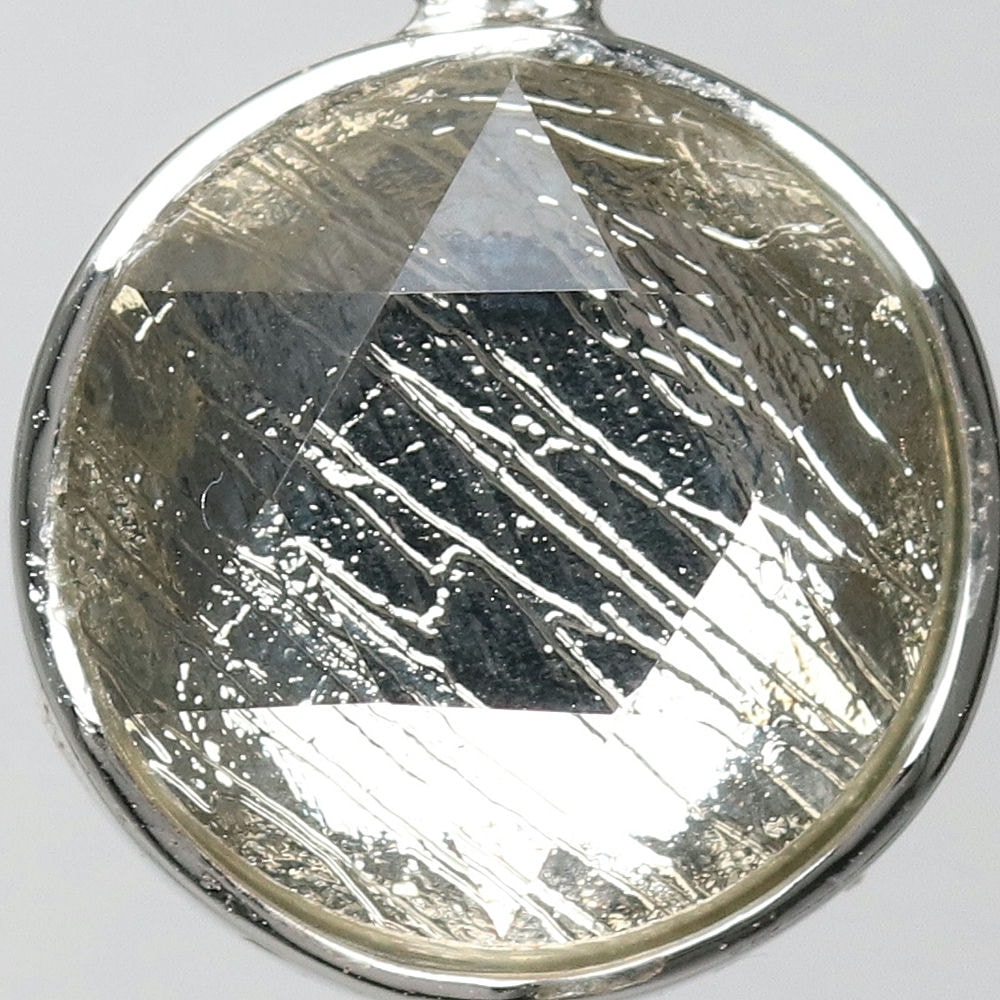 ギベオン隕石に、六芒星を象った両面コーティングを施すことでキラキラと輝く美しいペンダントトップに仕上げました。