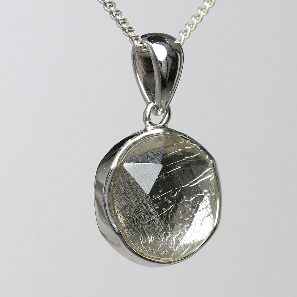ギベオン隕石に、六芒星を象った両面コーティングを施すことでキラキラと輝く美しいペンダントトップに仕上げました。